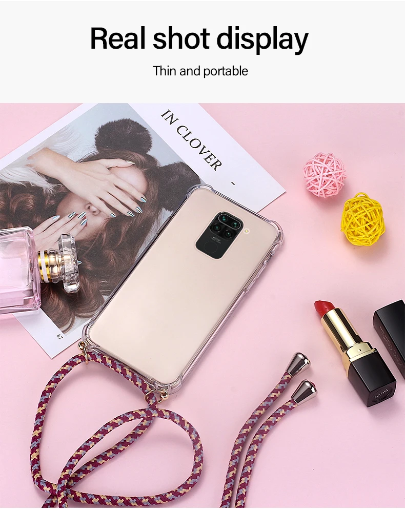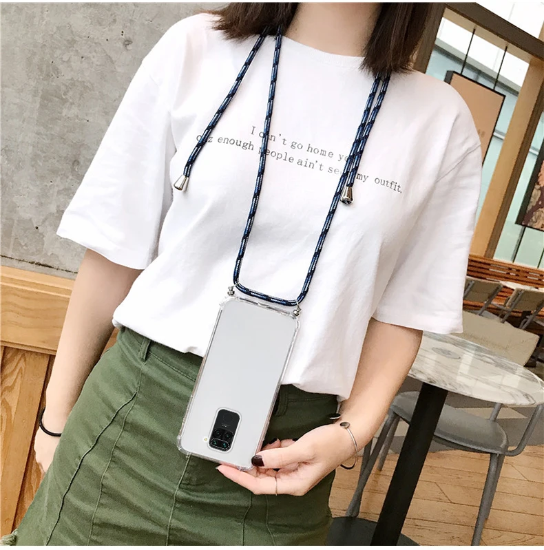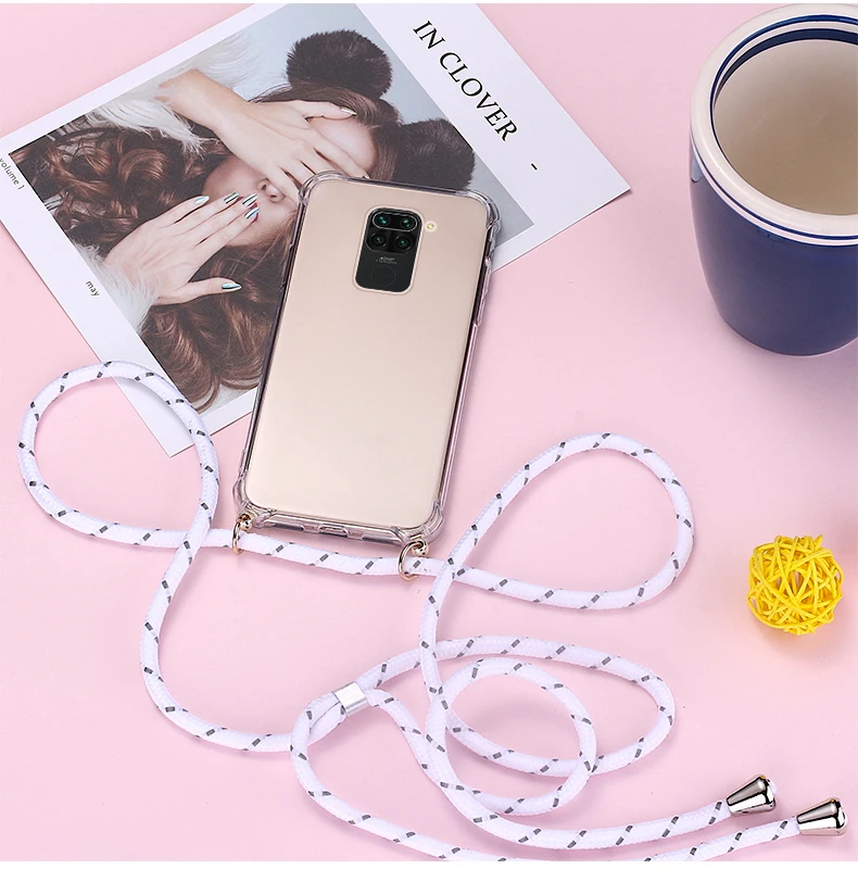 Силиконовый чехол для Xiaomi Redmi Note 10, 9, 8, Mi 11, 10, 9 T Lite Pro, Ультратонкий чехол с ожерельем и веревкой