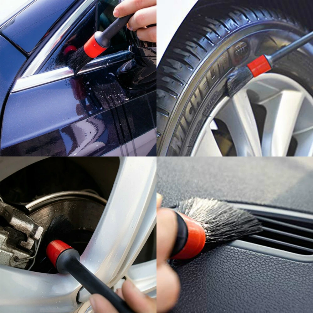 5 разных размеров кистей для удовлетворения ваших потребностей.Достаточная длина для легкого исследования и проникновения в гайку, узкое пространство.Нет металлических деталей, нет возможности повредить или поцарапать прецизионные колеса.Мягкая щетка, идеально подходит для использования на мягких кожаных сидениях или наружные знаки.Каждая кисть имеет отверстие для подвешивания ручки для удобной переноски.Многофункциональная щетка, Влажная и сухая.Может использоваться для удаления пыли, хлебных крошек и других мелких предметов с колес, вентиляционных отверстий, отделки, зазоров сидений и знаков, что делает ваш автомобиль полностью чистым изнутри.