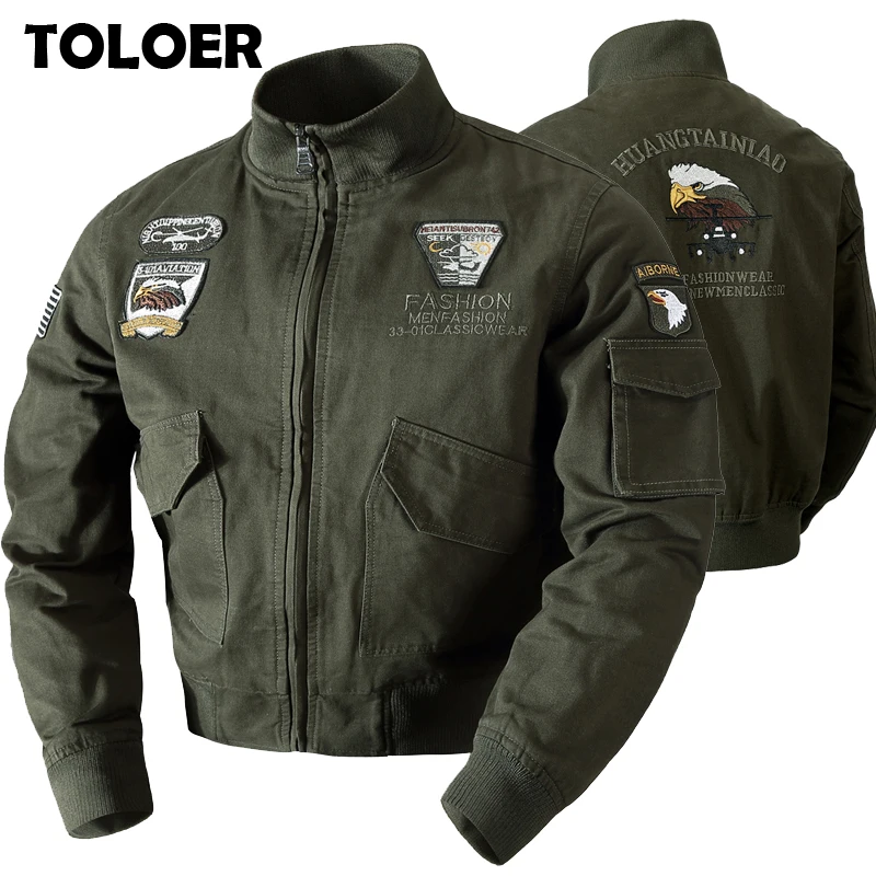 Мужская куртка-бомбер в стиле милитари, осенне-зимняя повседневная однотонная куртка-бомбер на молнии, новая приталенная мужская куртка с воротником-стойкой и вышивкой, 2022