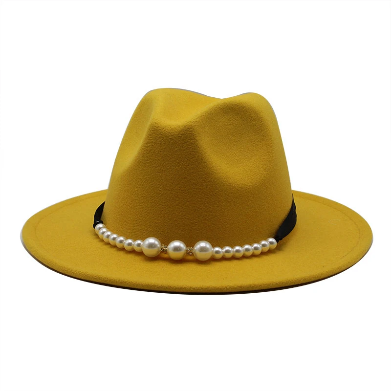 Шляпа фетровая Женская однотонная, с широкими полями, желтаябелая