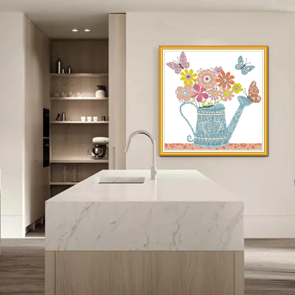 Цветочный горшок Joy Sunday, домашний декор H834, счетный штампованный цветочный горшок и бабочка, рукоделие, Набор для вышивки крестиком
