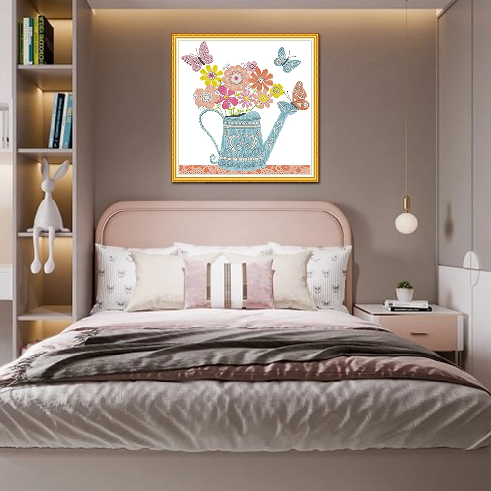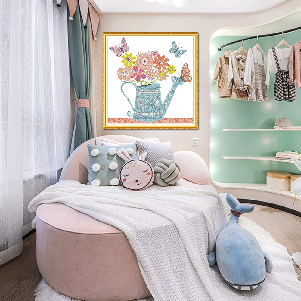 Цветочный горшок Joy Sunday, домашний декор H834, счетный Печатный цветочный горшок и бабочка, рукоделие, вышивка, Набор для вышивки крестиком «сделай сам»
