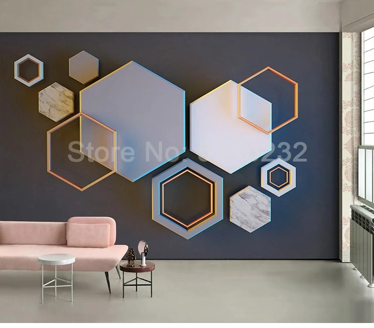 Роспись на заказ, современный дизайн, 3D стерео Геометрическая Шестигранная мозаика, фоновая настенная живопись по телевизору, фотообои для гостиной, спальни
