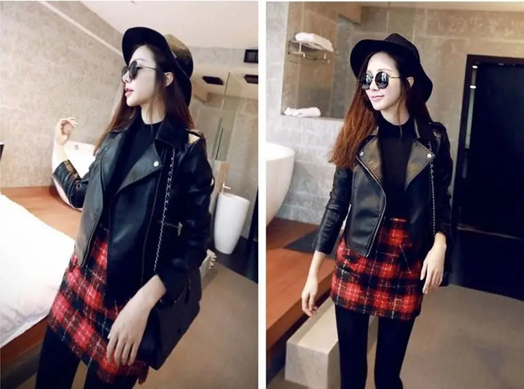 Куртка женская демисезонная из экокожи, с отложным воротником