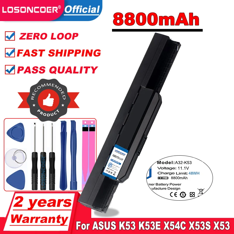 LOSONCOER 8800 мАч Аккумуляторный блок для ноутбука A32-K53 A41-K53...