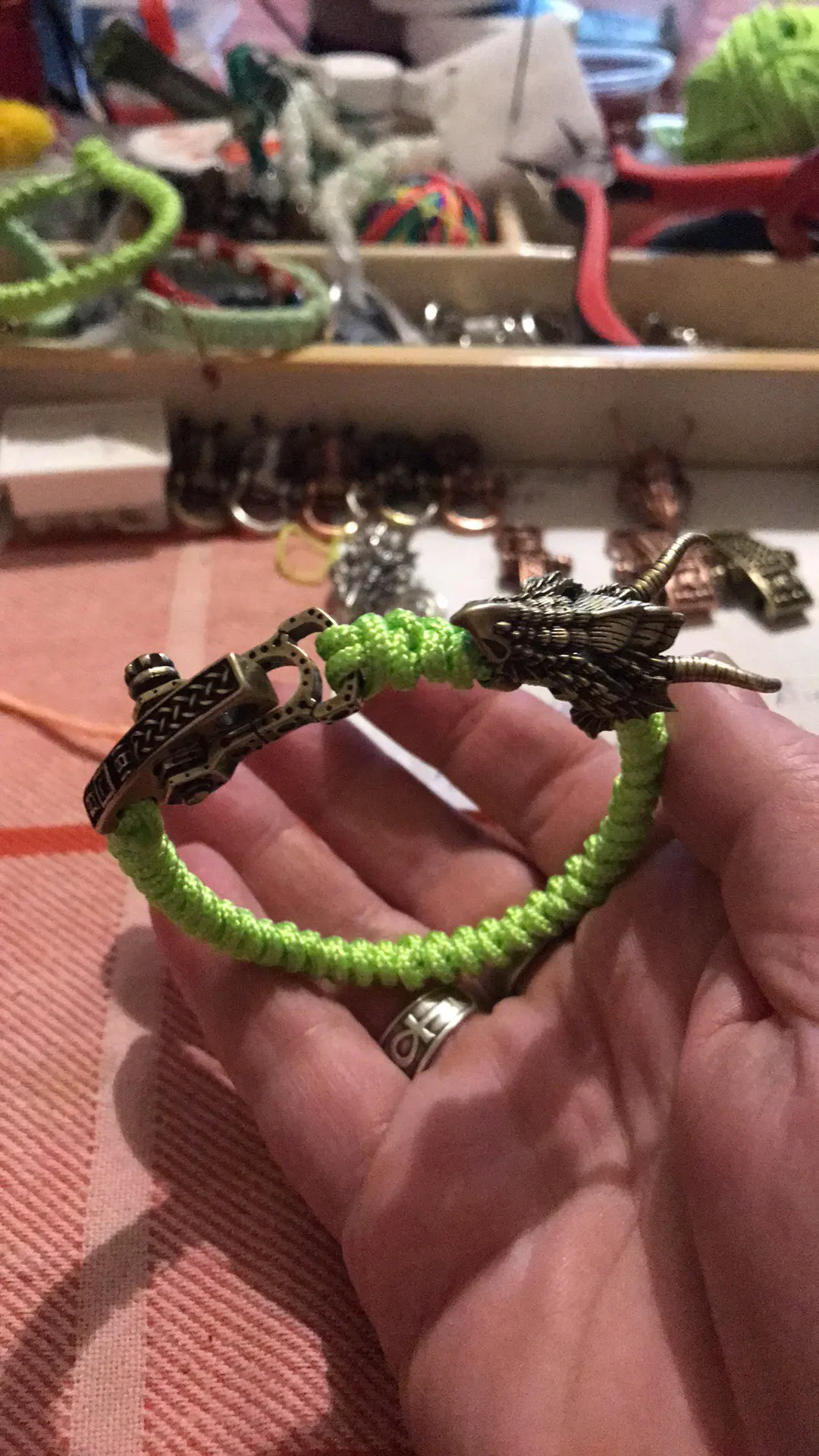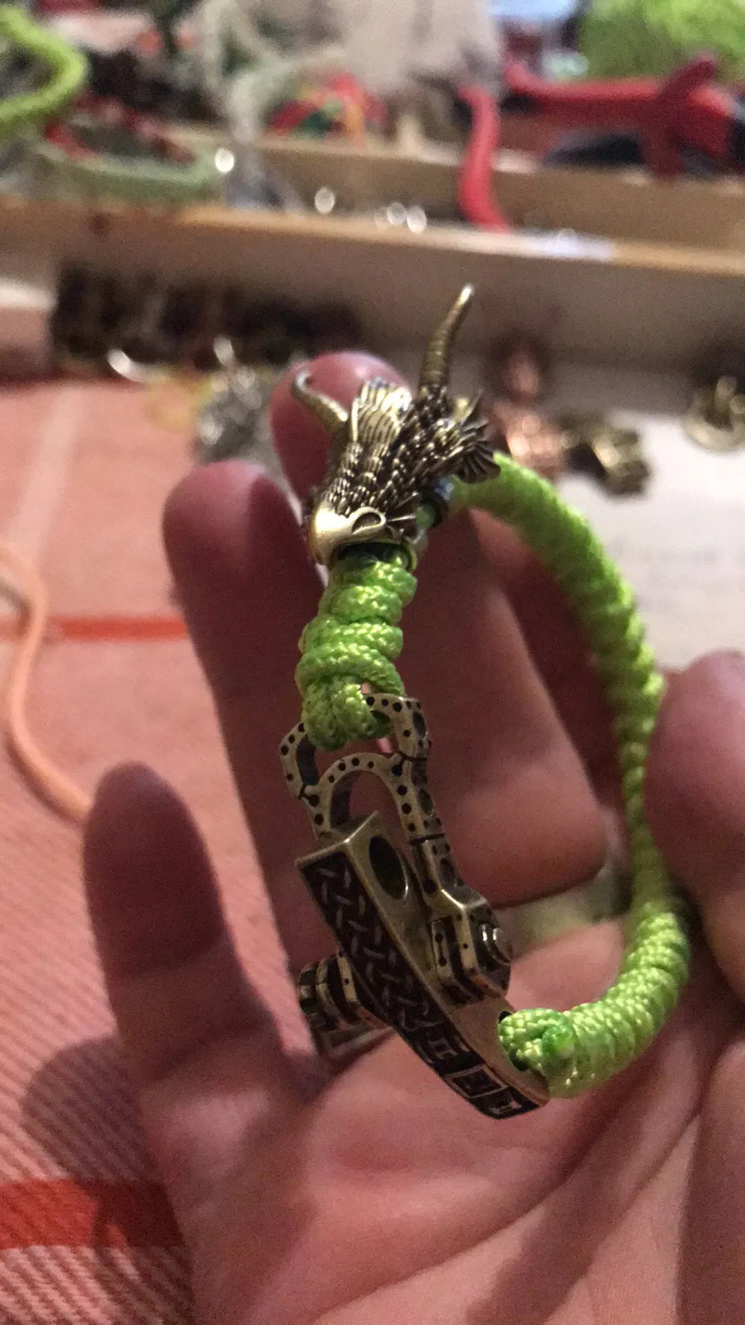 Очень красивый дракончик, аккуратно сделан. Но дырочки под шнур очень маленькие, у меня ни один из моих паракордов не влез.