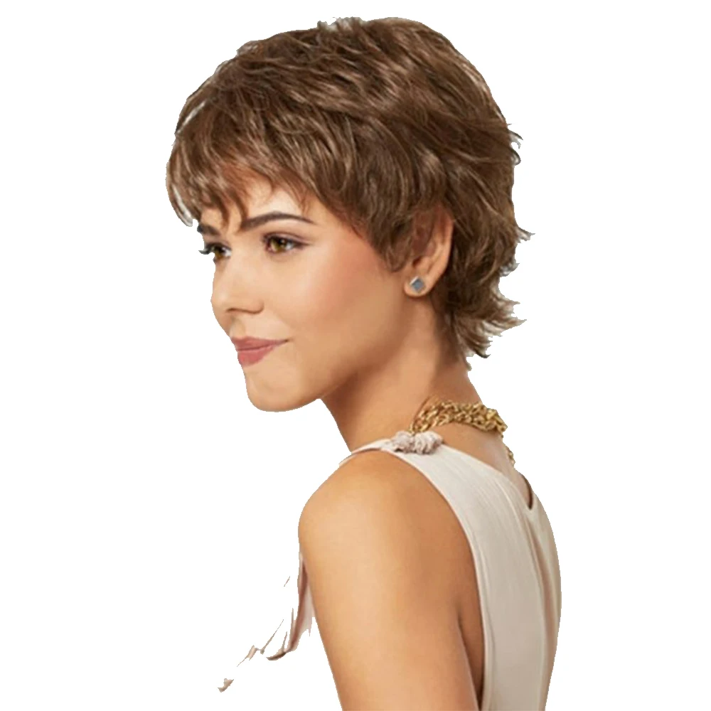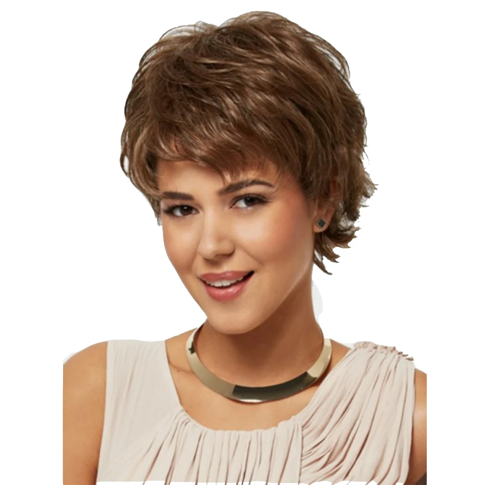 Короткий парик weilai с термостойкой натуральной челкой и темно-каштановыми синтетическими волосами, прямая стрижка для белых женщин