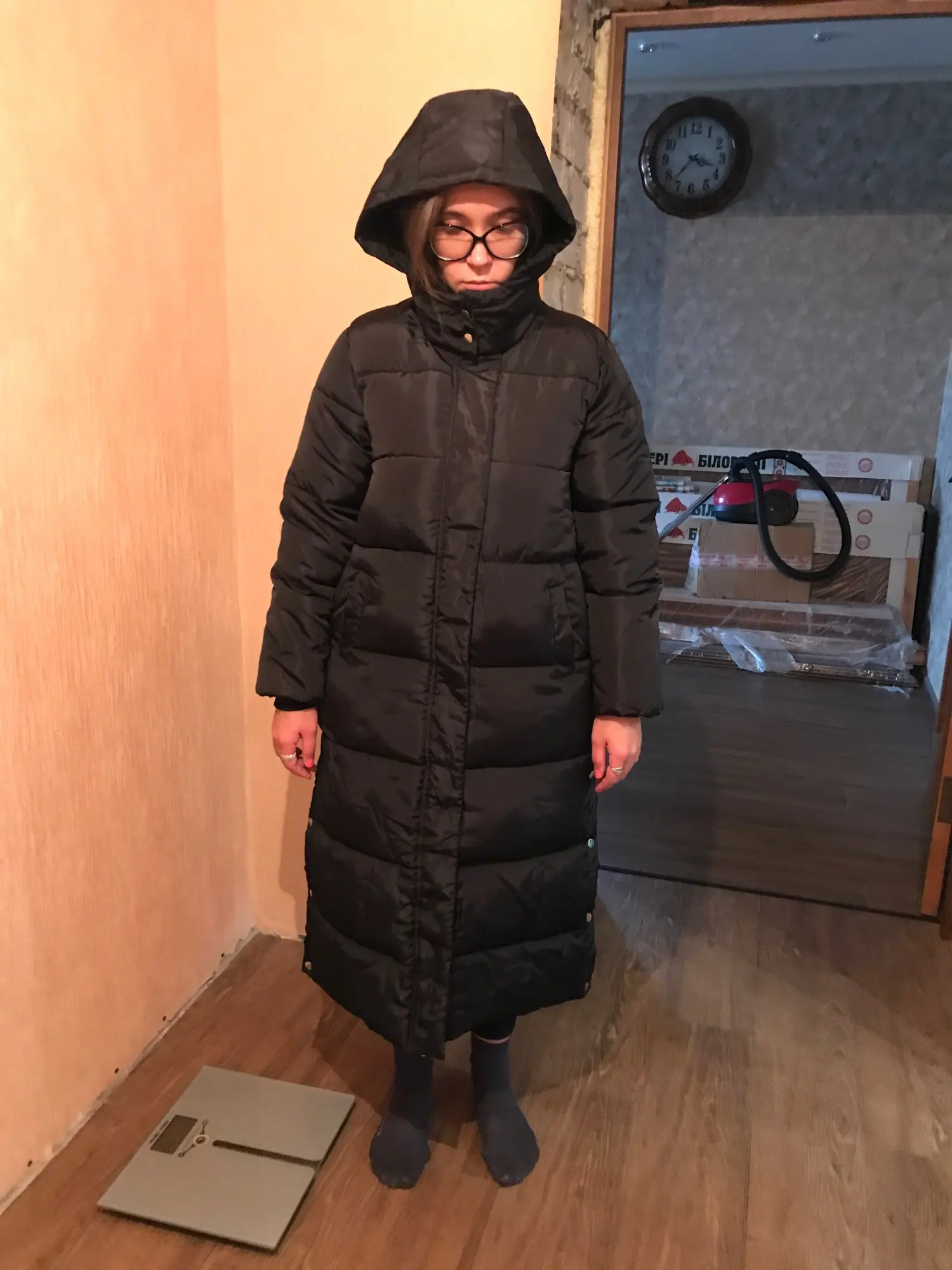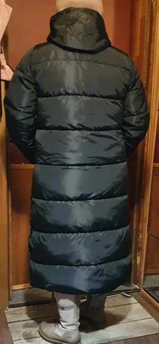 Я всех благодарю, кто оставляет отзывы, не жалея своего времени! Я сделала заказ 19.01.21, в Томск пришел – 04.02.21. Я заказала 3XL на ОГ-94 см (в кофте), ОБ -105 см (в одежде) и рост 172 см. И осталась довольна: длина приличная, в том числе рукав на месте, пуховик свободный (есть место для толстого свитера). Это толстый нелегкий пуховик. Очень теплый! В -15 С в нем жарко. В минус -25 С тепло. Глубина капюшона небольшая. Ткань немного блестит. Карман не глубокий. В него конечно можно положить платок, но думаю, что при ходьбе он может выпасть. Пуговицы внизу по бокам считаю нужными, потому что при ходьбе когда они были застегнуты, ходить неудобно, шаг получается коротким. Если шагаешь быстро, а значит широко, пуговицы сами расстегиваются. В целом, могу сказать, что по цене 2300 руб. пуховик очень хороший: стильный, выглядит дорого, а главное в нем очень тепло! Мне в нем комфортно и уютно. В нашем городе по такой смешной цене такой длинный теплый пуховик не купить. Советую!