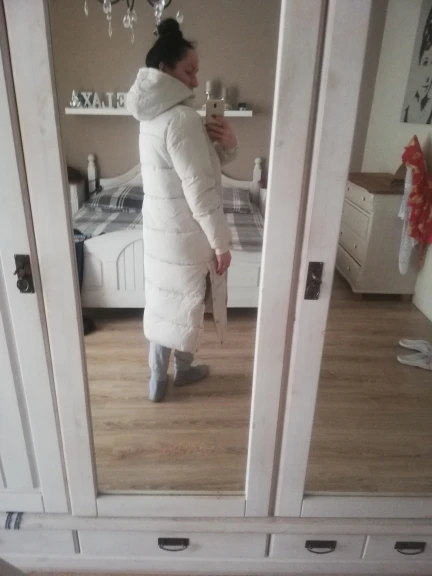 Куртка супер. Пух, как на картинке. Я очень рад. Для полировки szloa 18 дней. Когда размер XXL Длина 116 см. Я ношу размер 40 при росте 175 см .... Прекрасно ложится и рукава тоже хорошие. Dziekuje и рекомендую