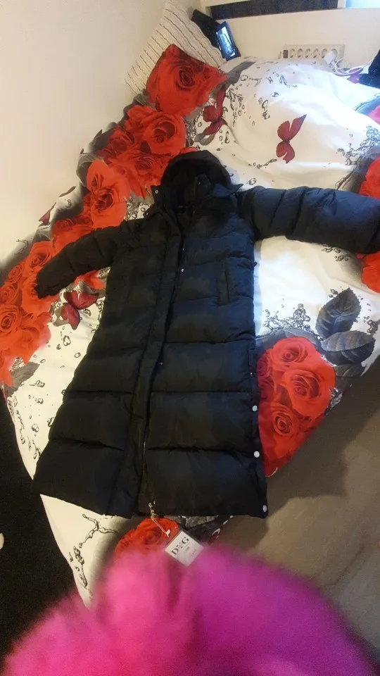 Пуховик слишком красивый, взятый в размере XXL, в то время как я делаю M/L, я измеряю 1m72, и он идет до нижней части колена, поэтому для маленьких девочек это может случиться до земли, доволен своей покупкой, прибыл чуть более 3 недель