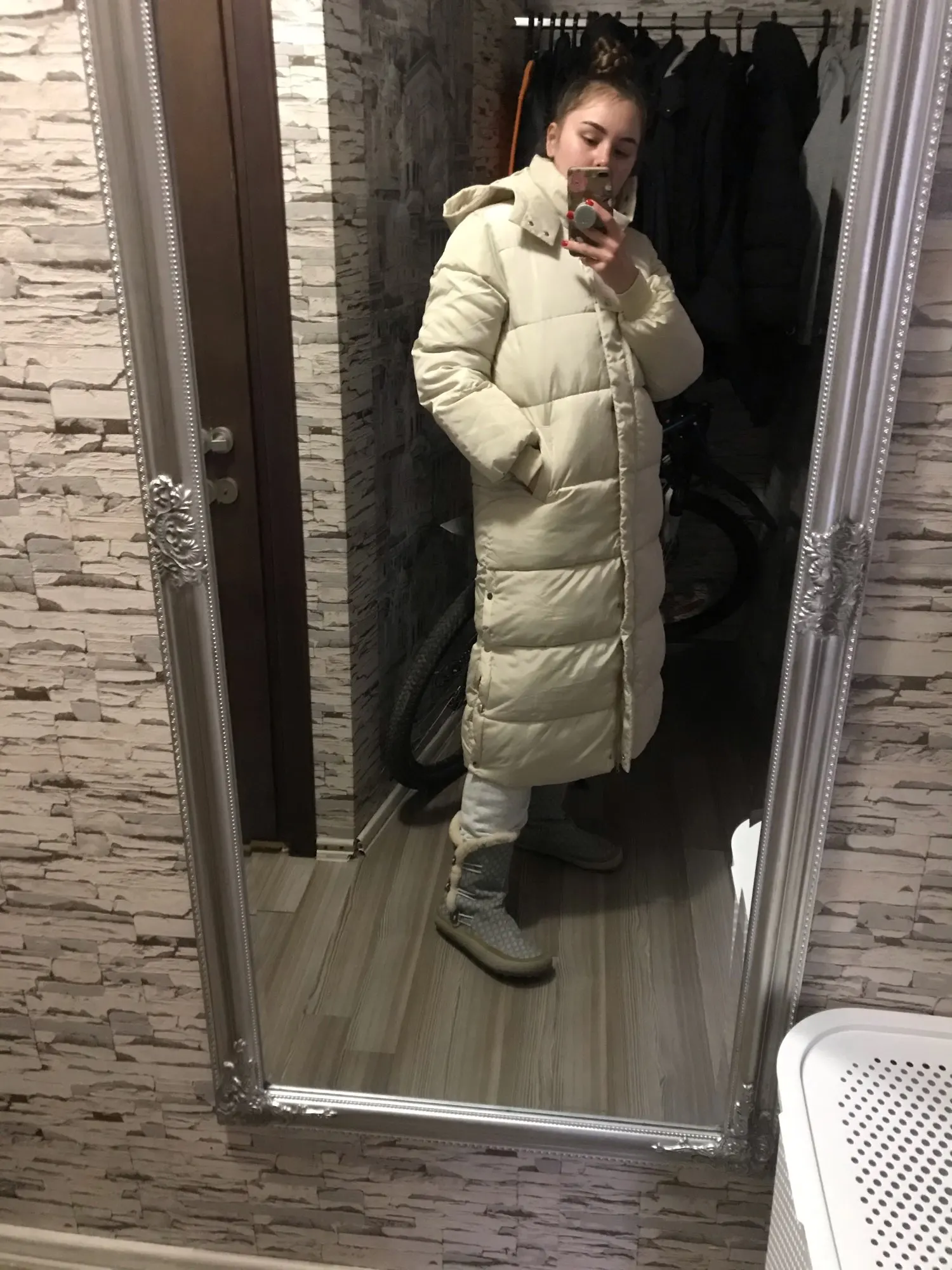Девочки, рассказываю про пуховик. Пришел быстро, за 2 недели. На параметры рост 169, 98-80-100 взяла ХХL, влезла, видно по фото, но на флисовую кофту уже в обтяг. Если на мои параметры хотите свободней с кофтой, берите больше на размер. В целом пуховик выглядит средненько, набит не равномерно, внизу оказалось больше наполнителя (видно на фото). В -30 на улице я не замерзла, но в плечах хотелось бы теплее. Этот пуховик для ребенка-подростка (на одну зиму пока растет), или ходить в магазин возле дома. В повседневной жизни я не буду его носить, не серьезно :) Вообщем, цена=качество.
