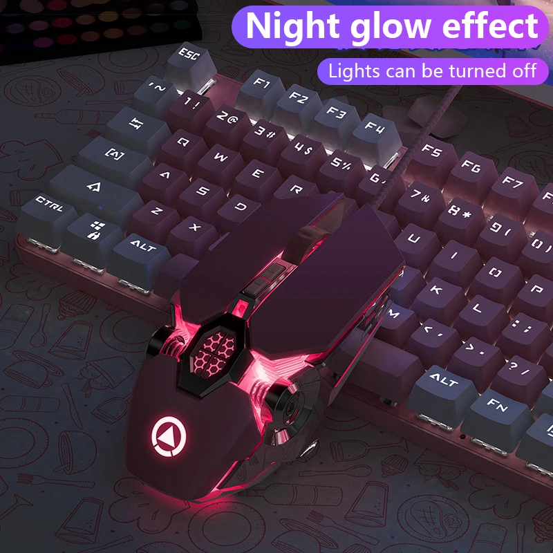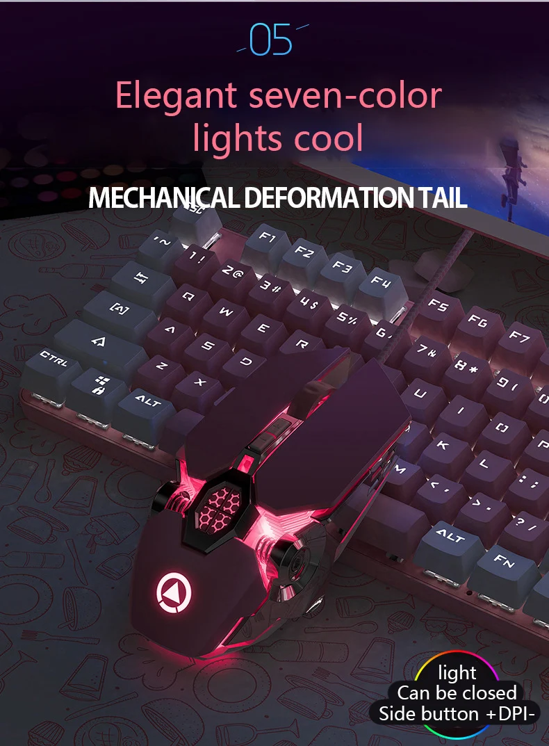 Мышь Компьютерная Проводная с подсветкой, милая Механическая Бесшум...