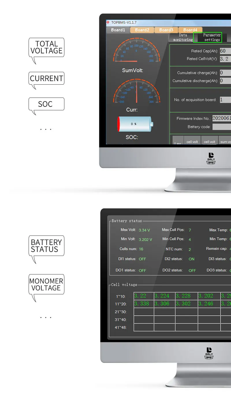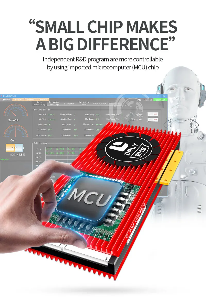 18650 smart BMS 16S 48V 80A 100A 120A Bluetooth 485 к USB устройству NTC UART программное обеспечение togther Lion LiFepo4 батарея BMS с вентилятором◆ В настоящее время все умные BMS без водонепроницаемой функции.◆ Эта ссылка для батареи 16S 48V LiFepo4. Пожалуйста, заполните параметр после размещения заказа, чтобы обеспечить SOC правильной информацией.По крайней мере, ответ должен быть отправлен нам Aliexpress центром сообщений. Спасибо.Особенности◆ UART: это обычный продукт Daly. UART является универсальным асинхронным приемником/передатчиком, он трансформирует данные для передачи между последовательной связью и параллельной связью. Как чип для преобразования параллельных входных сигналов в серийные Выходные сигналы, UART обычно интегрируется в другие коммуникационные интерфейсы.◆ RS485: Пожалуйста, выберите модель RS485 Daly. RS-485 принимает сбалансированную передачу и дифференциальный прием, поэтому он имеет способность подавлять помехи в обычном режиме.◆ Модуль Bluetooth: если вам нужна эта функция, пожалуйста, выберите модуль bluetooth, если вы не покупаете его, мы не отправим его вам.◆ Ниже аксессуары нужно купить отдельно.1.USB к UART кабель 2.USB к RS485 кабель 3. Модуль Bluetooth 4. Панель дисплея питания (активация ключа) 5.BMS сенсорный экран управления1. DL16S 48V Smart BMS 80A 100A 120A bms можно использовать для 15S Li ion или LiFePO4 или аккумулятор лто pack. Клиент может отрегулировать paramter перезарядки или переразряда параметр сидя и другие параметры, если клиенту нужно использовать какой тип батареи для той же серии батареи.Внимание:Клиент должен определить серии батарей, затем выбрать ту же серию BMS. Например, ваш аккумулятор 24S, вы должны выбрать 24S BMS, не можете выбрать 20 или другой. Номер серии BMS фиксирован, не регулируется после отправки BMS.◆ Инструкции по управлению: контроль устройства дистанционного управления.◆Значок транспортного средства: передача данных отправка команды◆Статистический отчет: собирайте информацию о данных, клиент может контролировать емкость аккумулятора и другую информацию о тревоге.◆Электронный забор: Предельный Диапазон забор.◆Информация об устройстве: информация о параметрах устройства и т. д.Информацию о вашем аккумуляторе можно проверить на вашем хост-компьютере, затем вы можете контролировать состояние батареи в любое время. Который легко контролирует ваше устройство. Умные BMS делают нашу жизнь легкой.