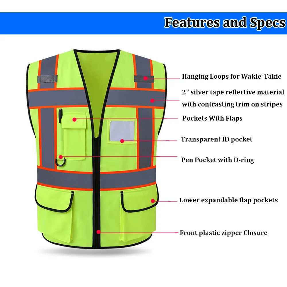 Защитный жилет с высокой видимостью, флуоресцентный желтый жилет, р...