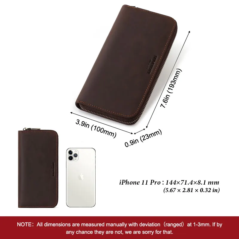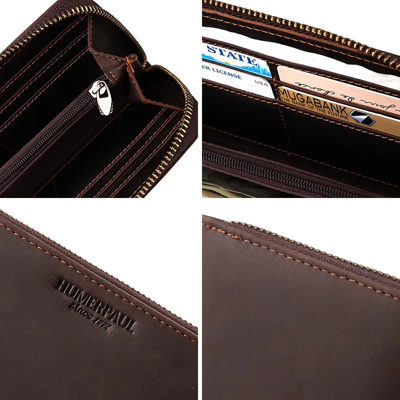 Удлиненные кошельки KAVIS мужские на молнии, стильная визитница, вместительный бумажник из воловьей кожи с рчид