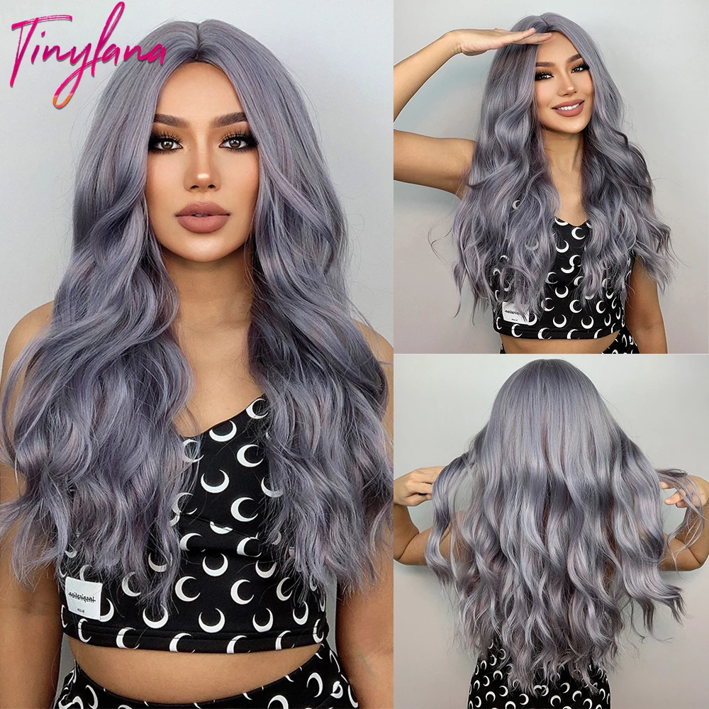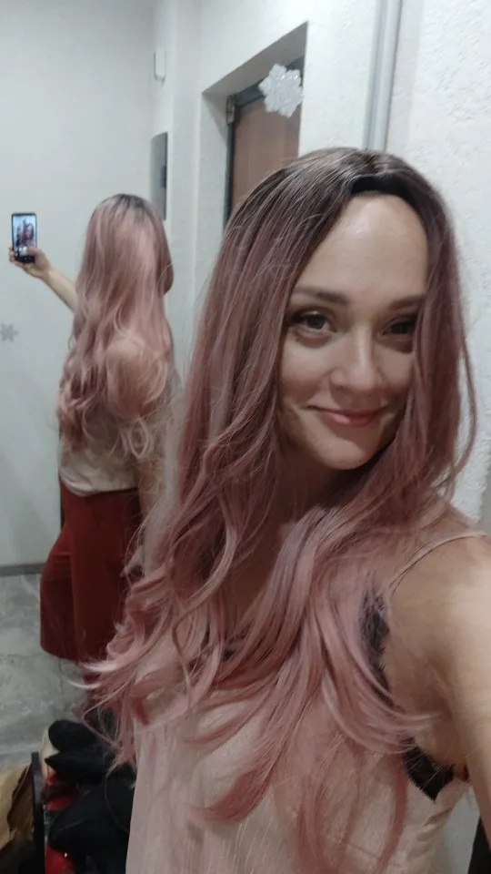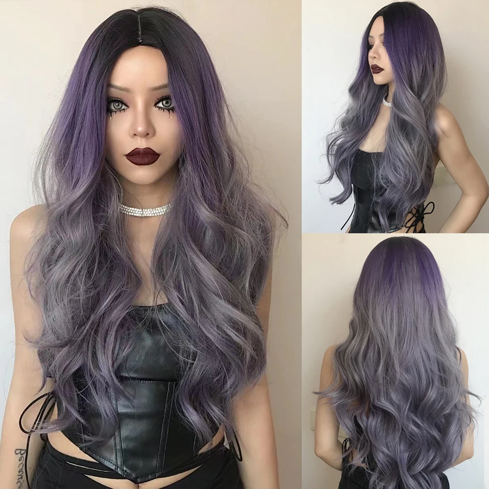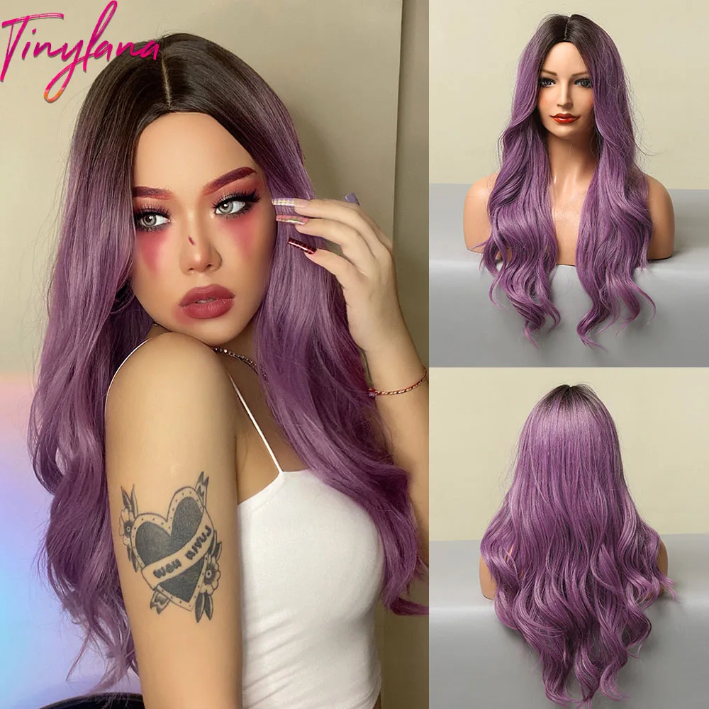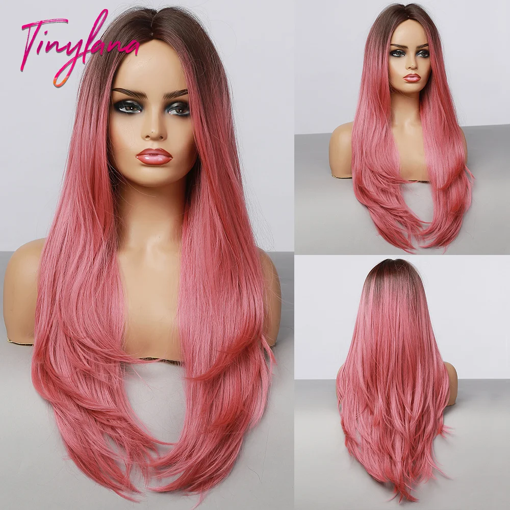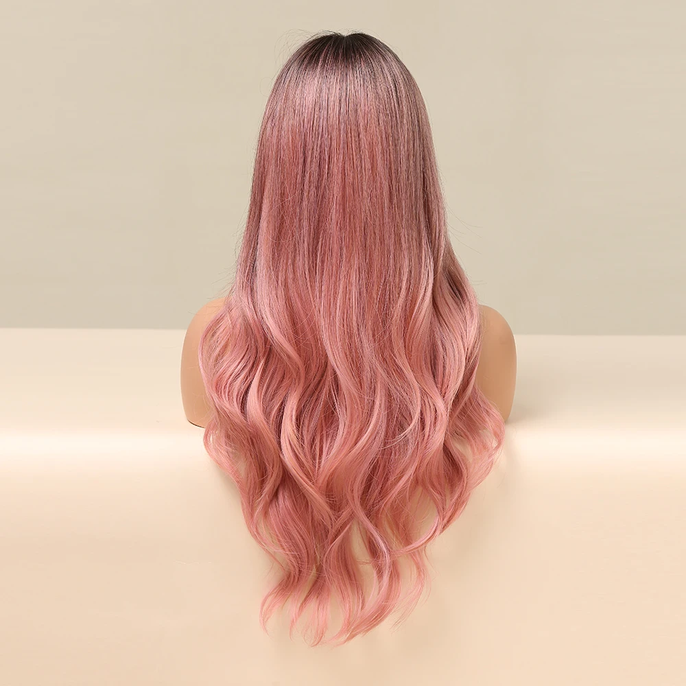 Миниатюрный синтетический длинный волнистый парик Лана с эффектом омбре, черный, розовый цвет, тело, волна, средняя часть, натуральный, для женщин, термостойкий