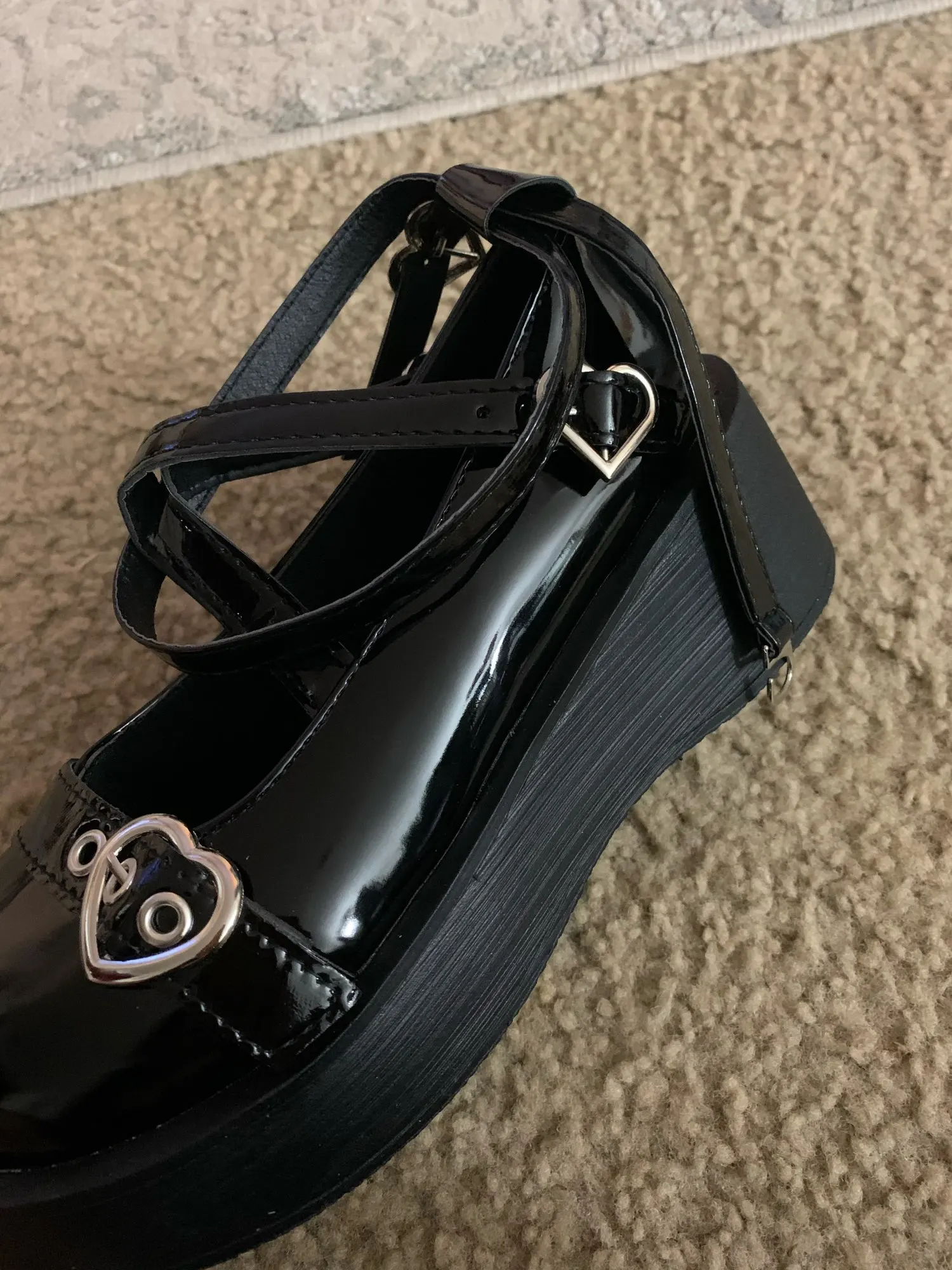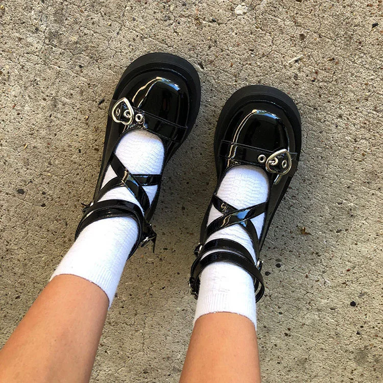 Туфли женские на платформе и каблуке, туфли-Лолиты на толстом каблуке, туфли с перекрестной шнуровкой, 2022