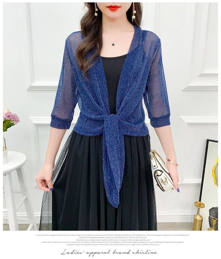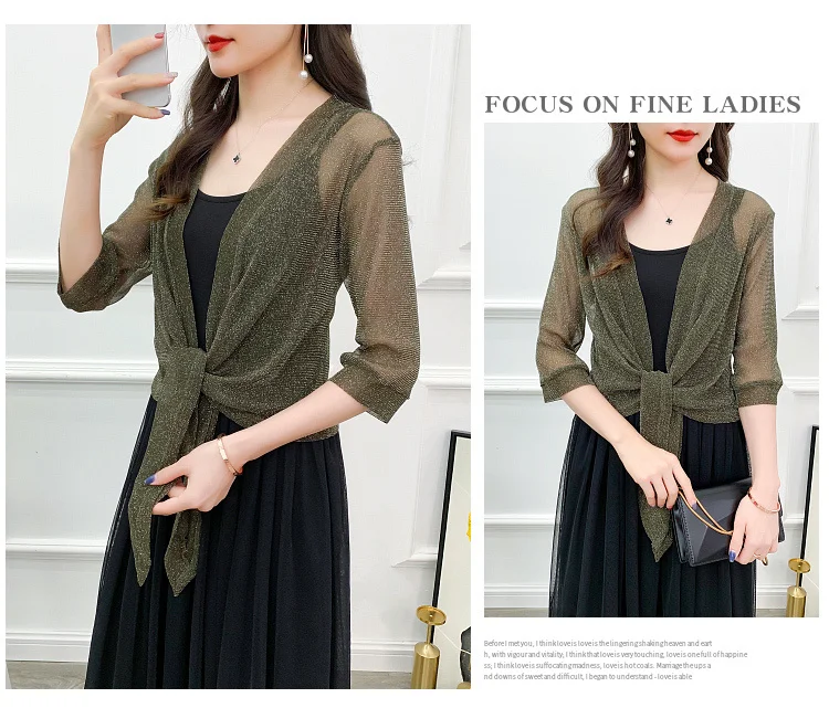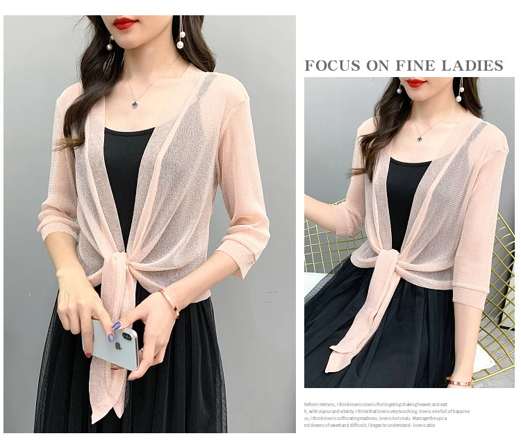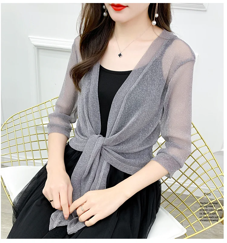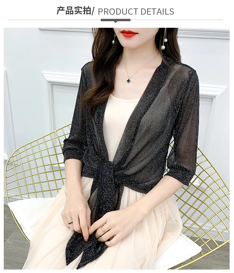 Женская шифоновая короткая куртка #3520, летний прозрачный топ с полурукавом, кимоно, пикантный кардиган, тонкое солнцезащитное пальто для женщин