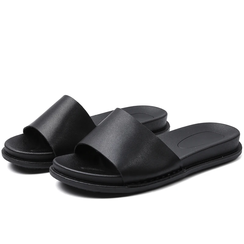 Летние женские кожаные тапочки на плоской подошве, удобные женские шлепанцы, черные, белые шлепанцы, женские шлепанцы