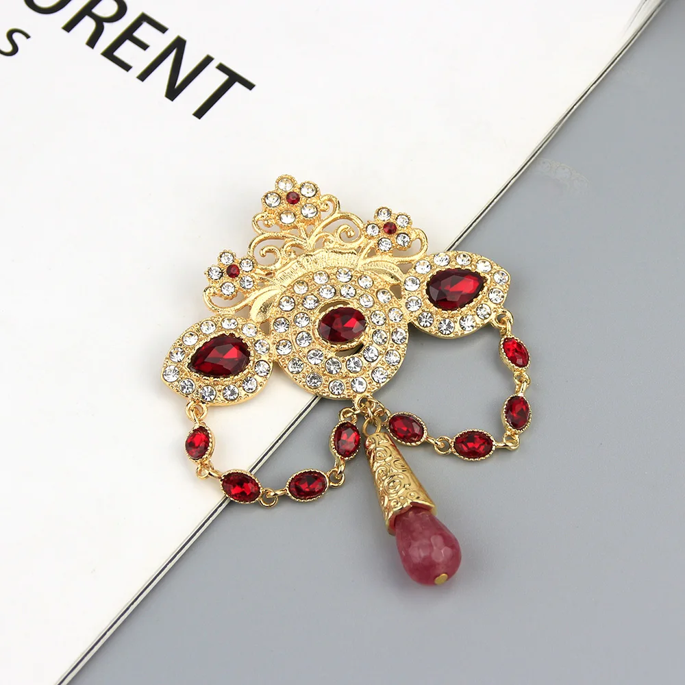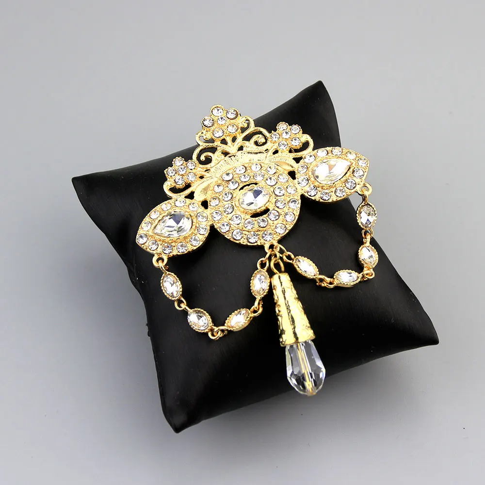 Sunspicems, модная богемная брошь в форме короны для женщин, золотого цвета, с кристаллами, марокканская Свадебная бижутерия, африканская Свадебная бижутерия, подарок