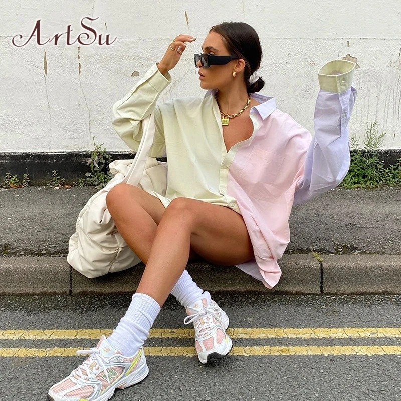 Женская длинная футболка-бойфренд с длинным рукавом, в стиле пэчворк