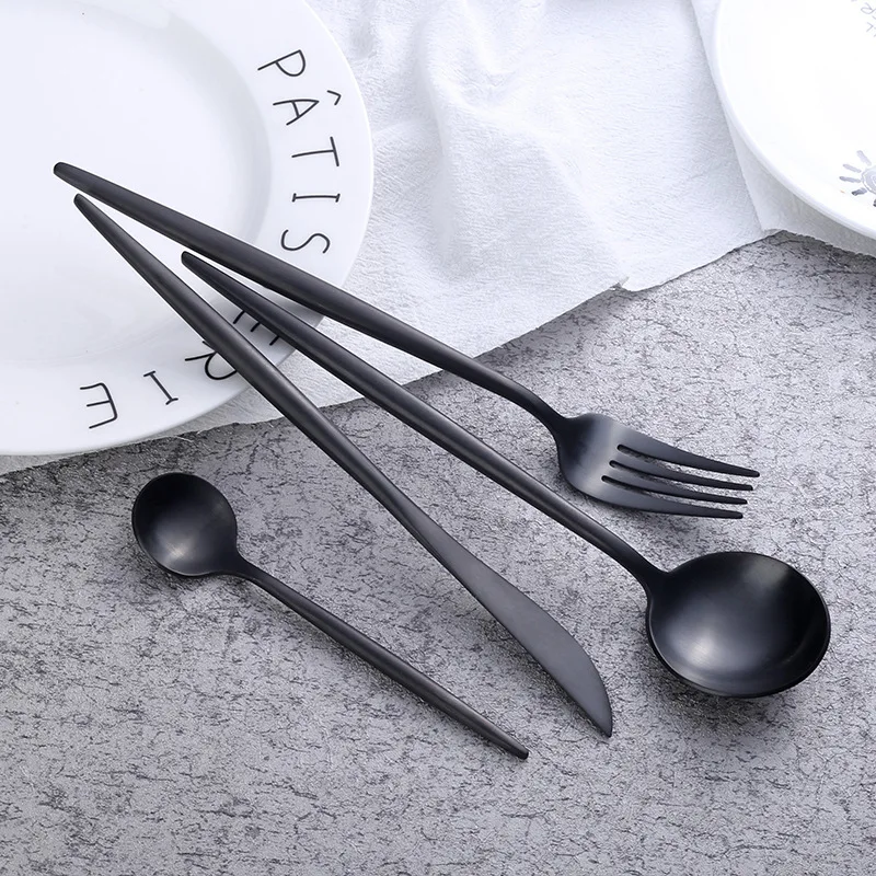 Набор столовых приборов из нержавеющей стали, Комплект кухонной утвари черного матового цвета, ложкавилканожпалочки, в западном стиле, для традиционного ужина в ресторане