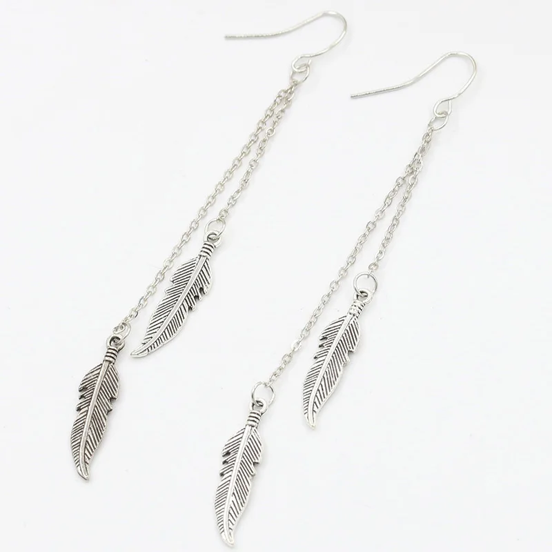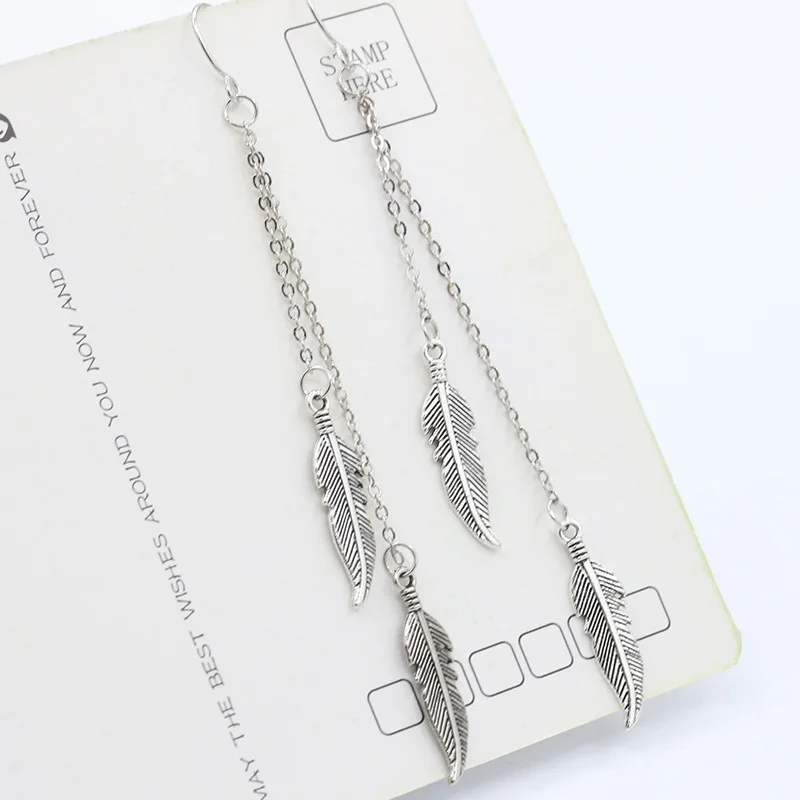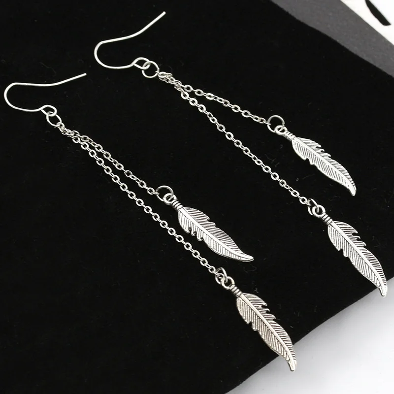 Длинные висячие серьги с кисточками, листьями и перьями, Модные подвесные женские серьги, ювелирные изделия, богемные подарки для девочек, Подвесные серьги