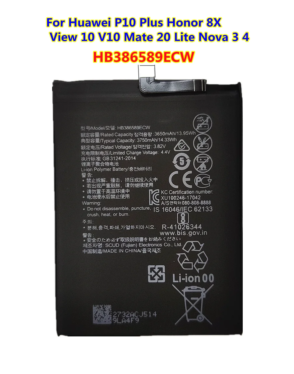 Аккумулятор HB386589ECW B-TAIHENG мА ч, для Huawei P10 plus, Honor 8X, View 10, V10, Mate 20 Lite, Nova 3, 4, 3750