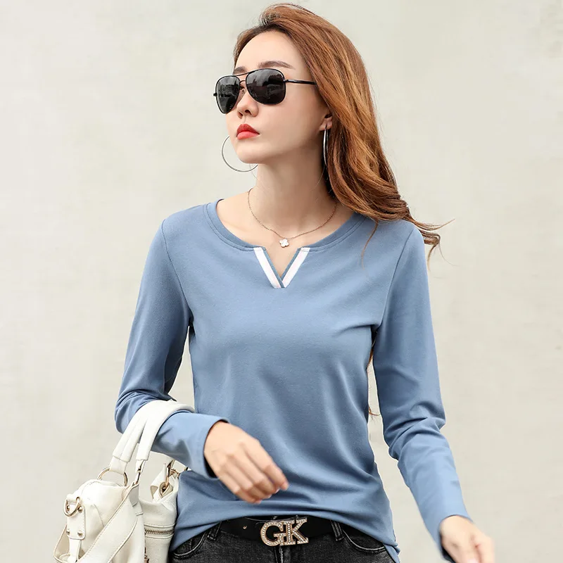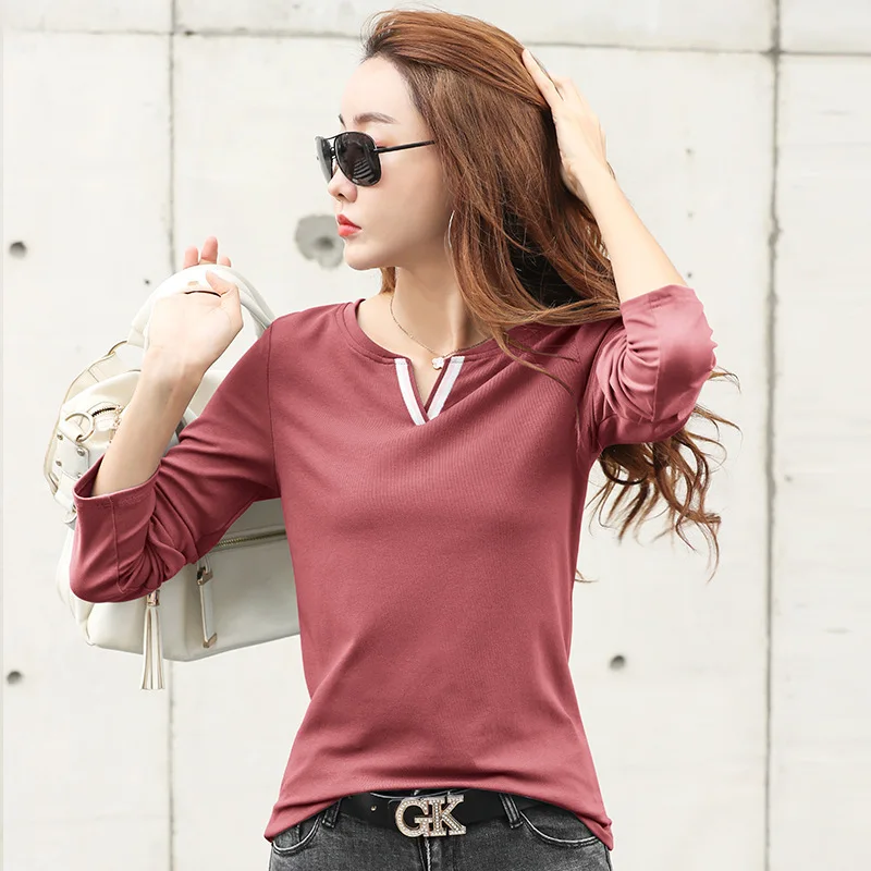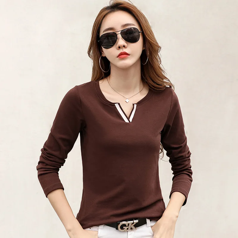 Новые женские футболки, женские футболки с длинным рукавом, Однотонная футболка, хлопковые зимние базовые топы, футболки, повседневная женская одежда