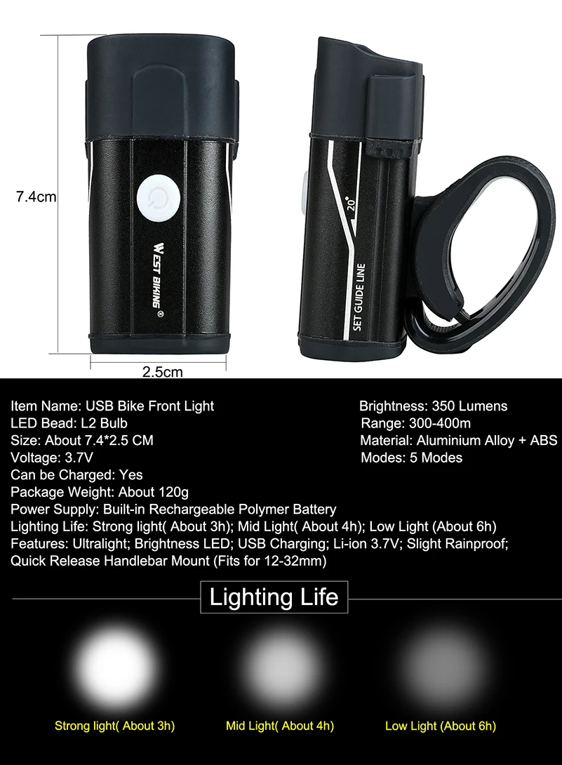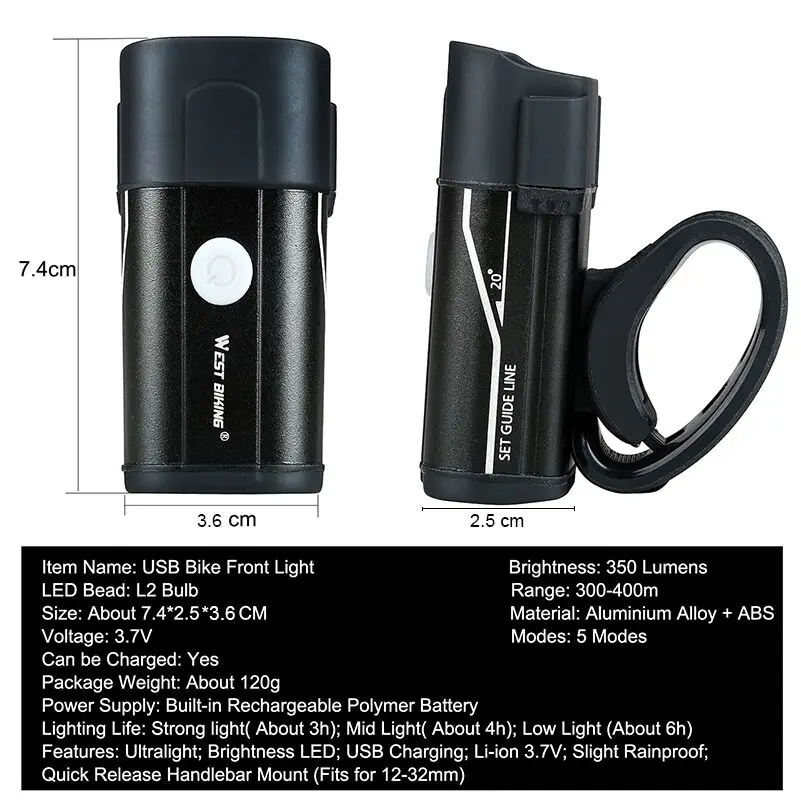 Фсветильник светильник велосипедный передний, 350 лм, 5 режимов