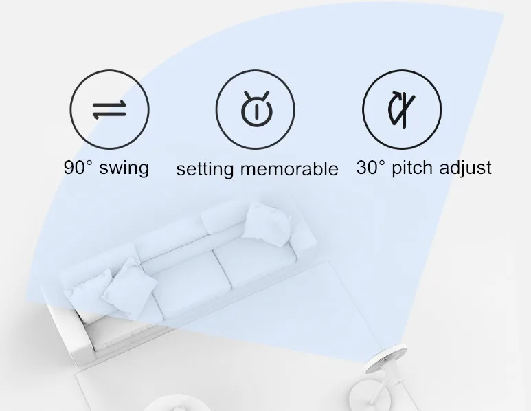 В приложении Mihome пользователи могут регулировать 3 передачи скорости ветра, амплитуду поворотной головки на 90 ° для удовлетворения различных потребностей.