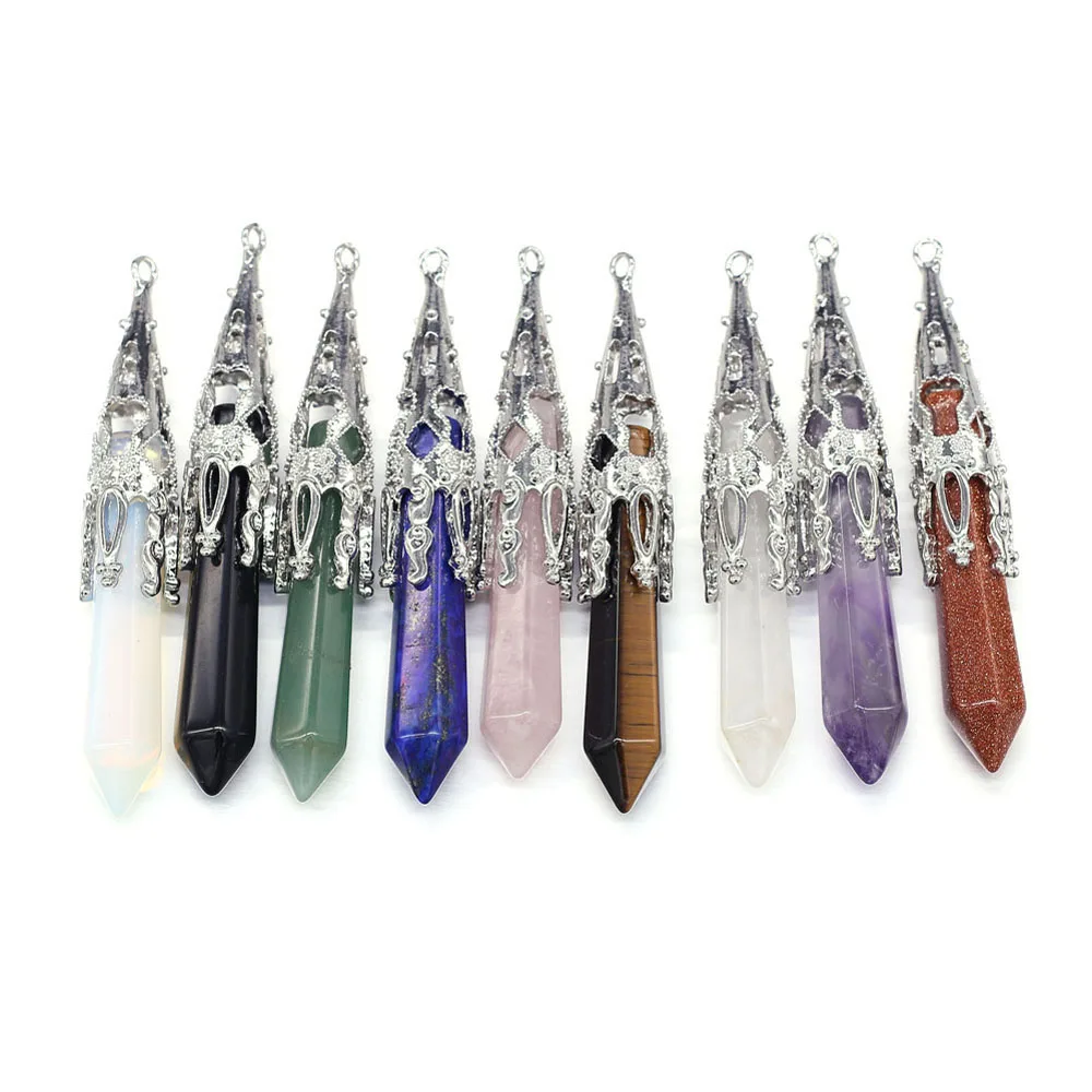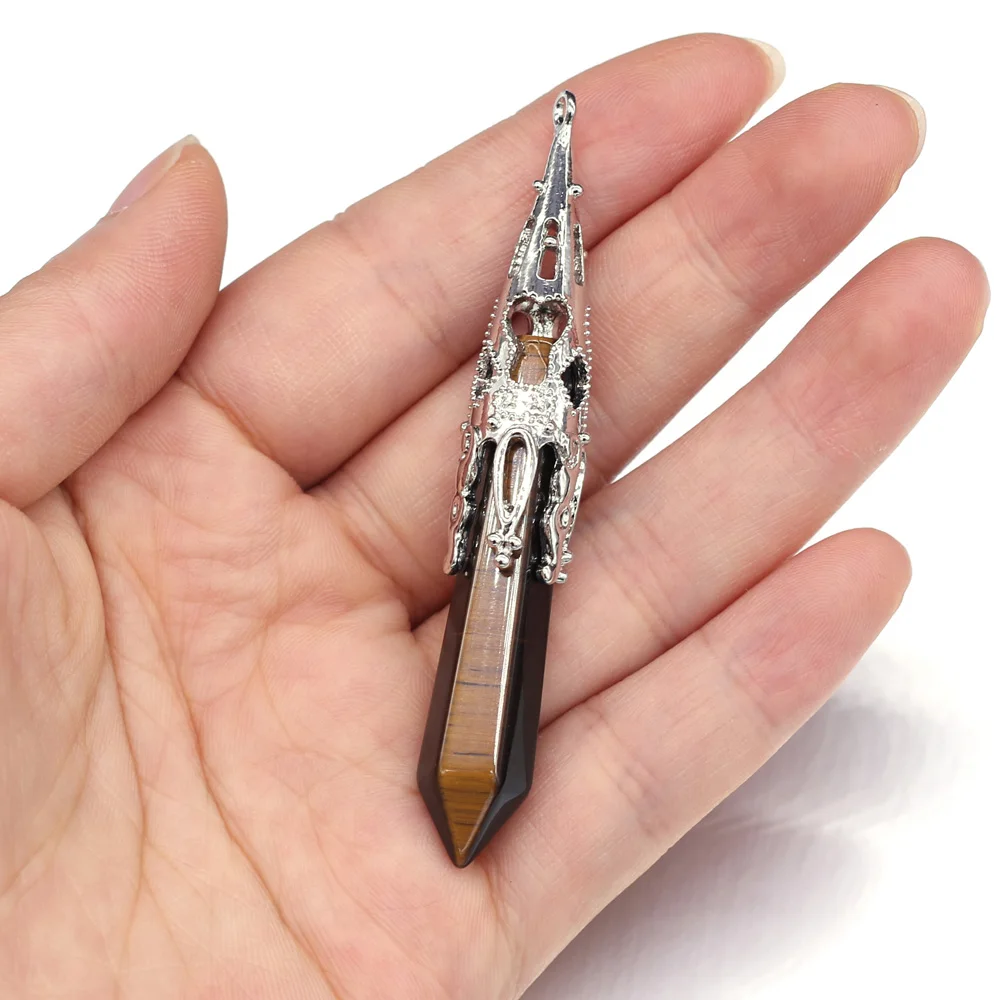 Натуральный камень, шестигранная подвеска в форме конуса, камень тигровый глаз, кулоны в виде ляпис-розы для изготовления ювелирных изделий, ожерелье 12x70 мм