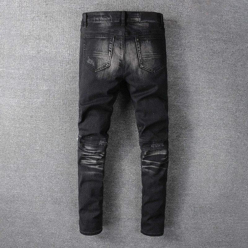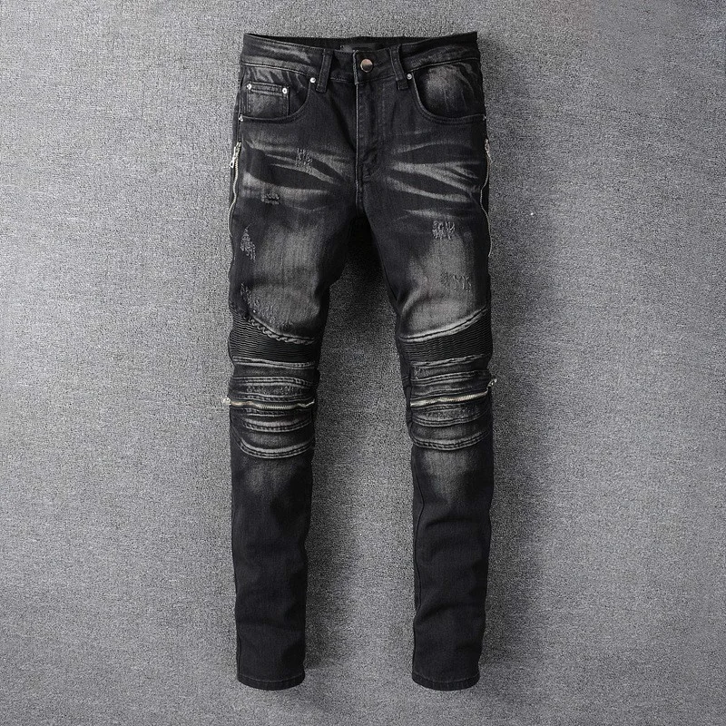 Джинсы мужские облегающие на молнии, модные штаны в стиле панк, байкерские узкие брюки до щиколотки, мотоциклетная одежда, большой размер, черные