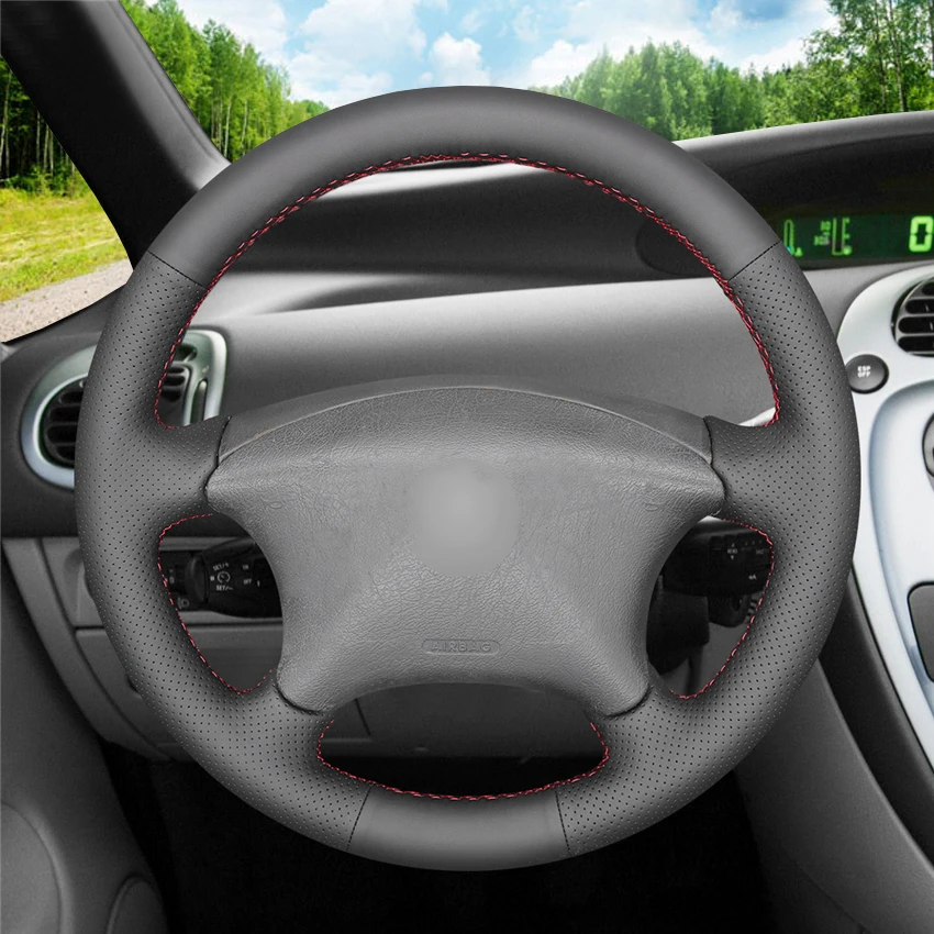 LQTENLEO черный чехол рулевого колеса автомобиля из натуральной кожи для Citroen Xsara Picasso C5 2001-2010 Peugeot Partner 807 2003-2008