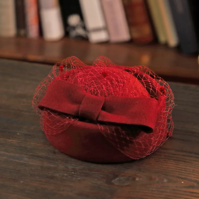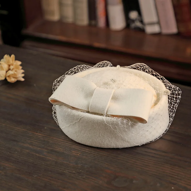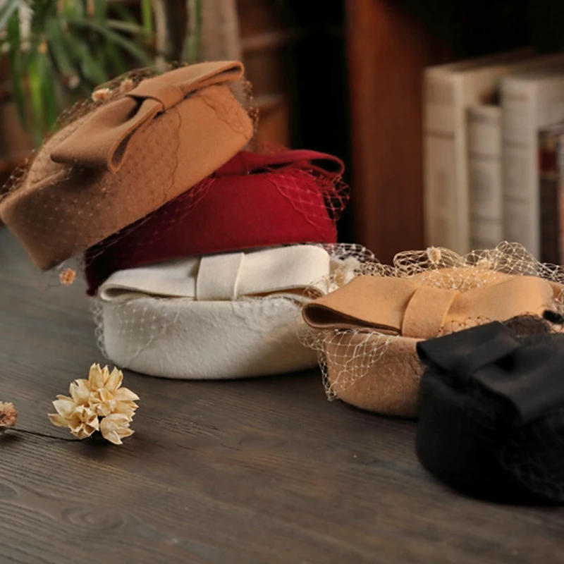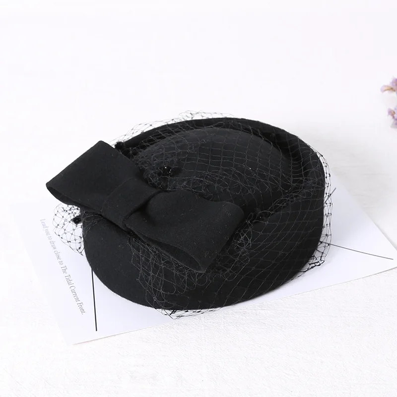 Шляпа Женская кружевная с узлом, элегантный свадебный головной убор в стиле ретро, сетчатый бант, аксессуар из шерсти