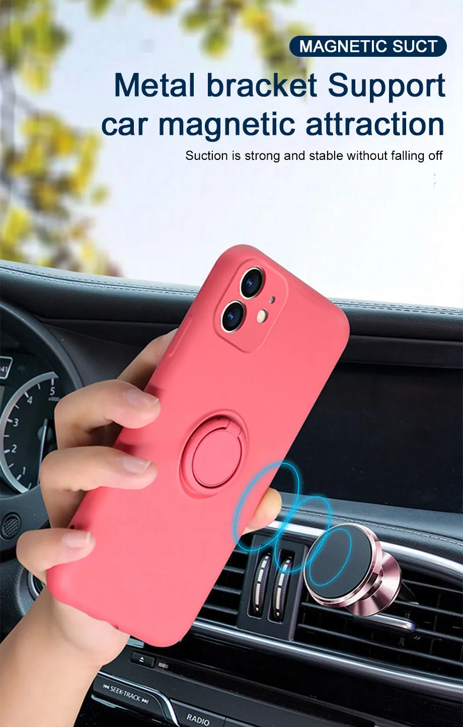 Силиконовый чехол с магнитным кольцом-держателем для iPhone 11 Pro Max XS X 7 8 6 Plus XR, задняя крышка автомобильного кронштейна iPhone 11 X, чехол для телефона с жидкостью