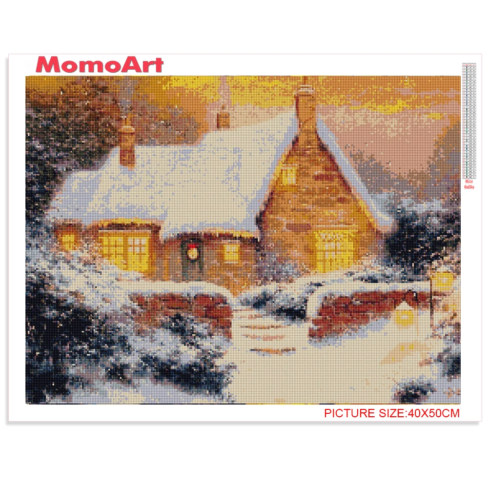 MomoArt Алмазная вышивка дом вышивка крестом наборы 5D DIY Алмазная мозаика пейзаж снег картина стразы декор для дома