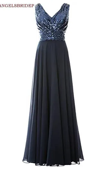 Длинные вечерние платья ANGELSBRIDEP с V-образным вырезом, блестящие платья с блестками, официальное платье знаменитости для выпускного вечера, женское платье 2-26