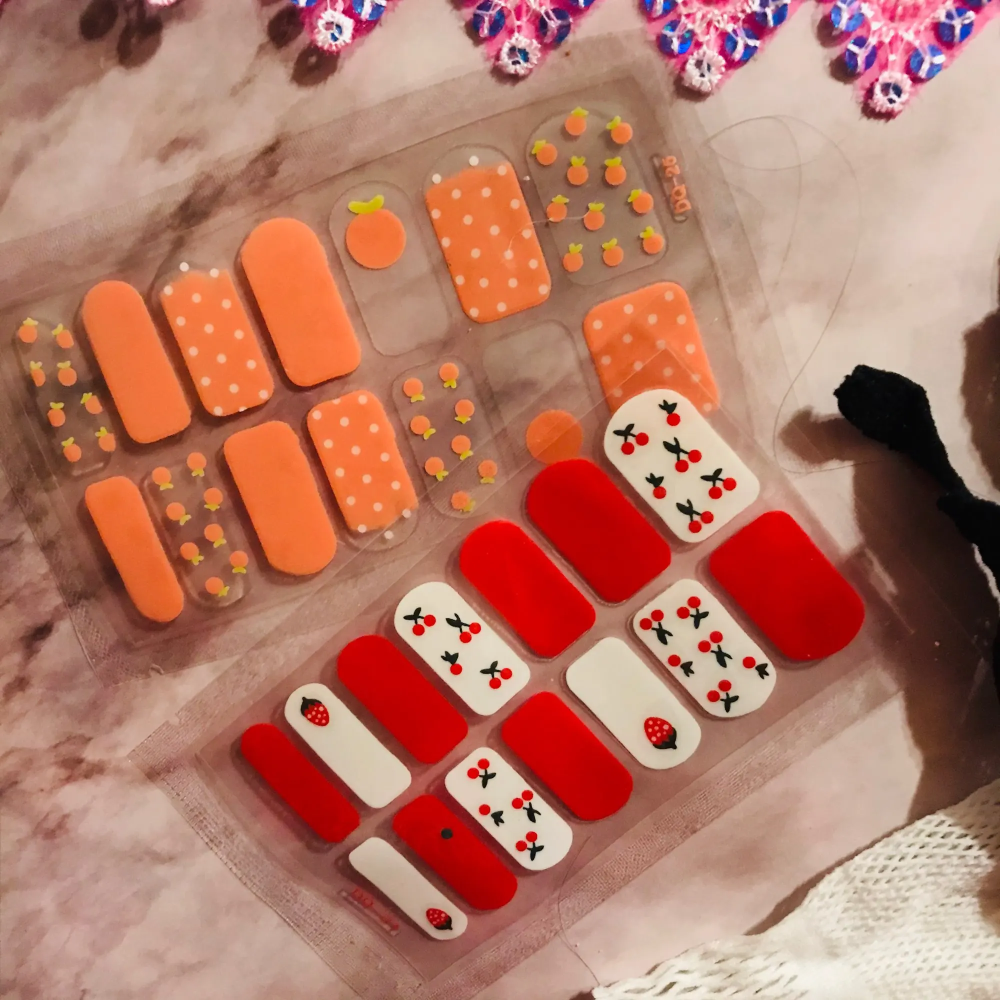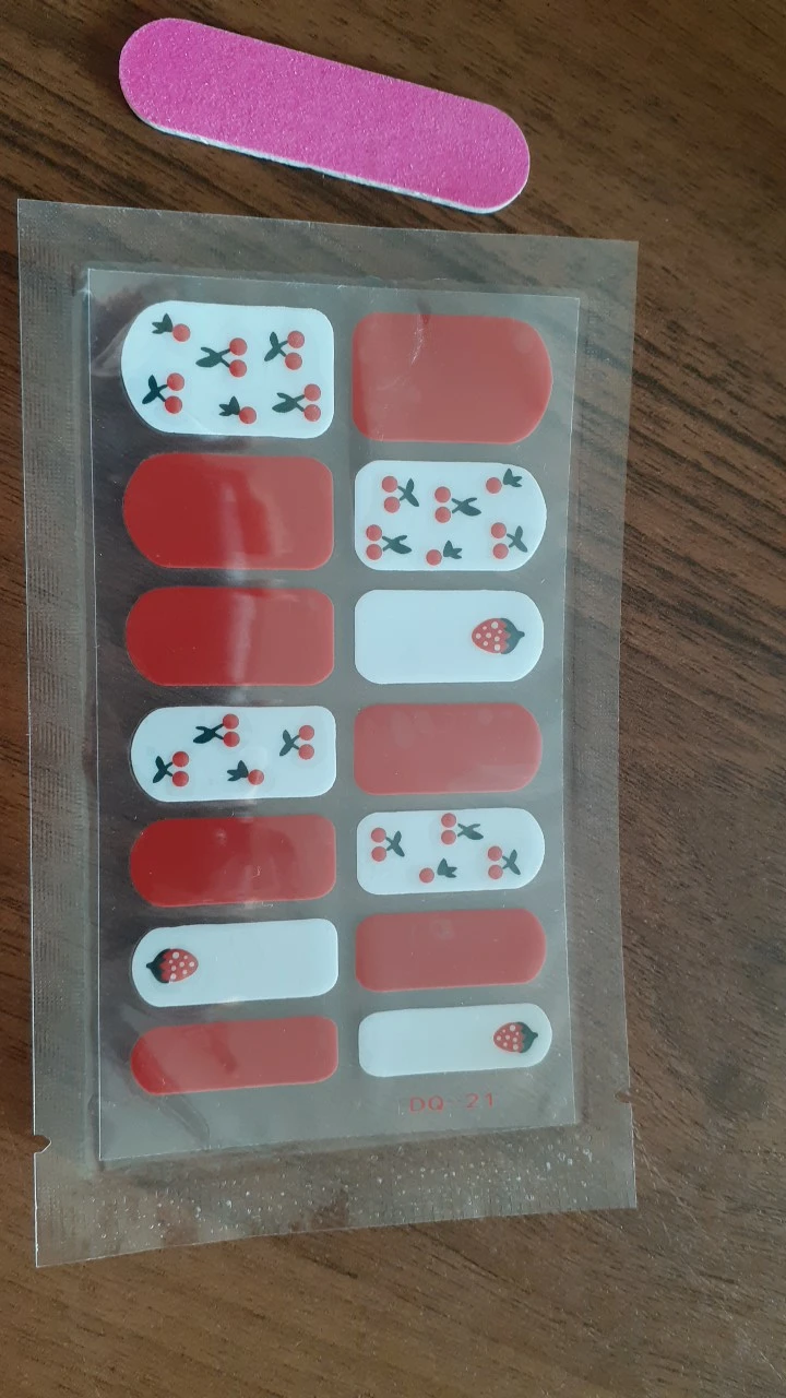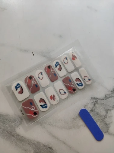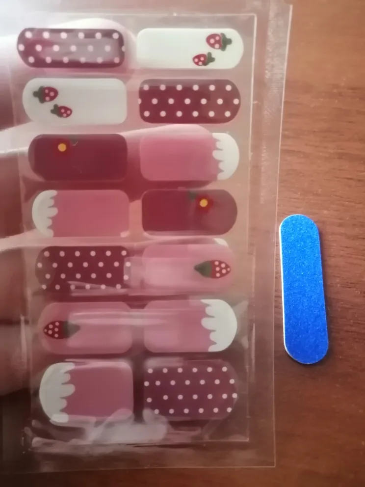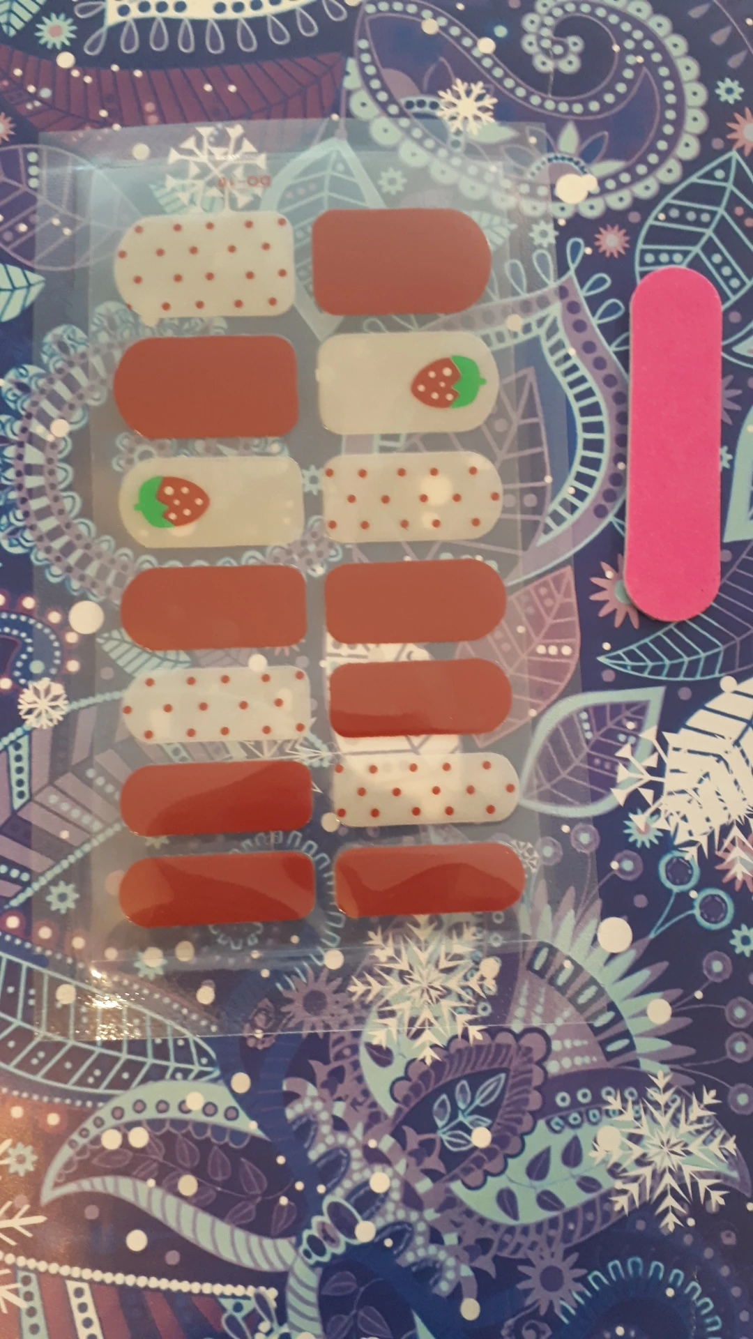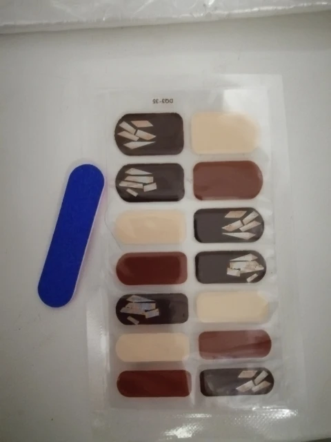 Отличные наклейки! С водными не получается, мороки много, поэтому заказываю только такие. Клеевая основа хорошая, держится даже без закрепляющего лака. Моя расцветка подойдёт больше на длинные ногти. В подарок продавец положил пилочку) заказом довольна, спасибо!