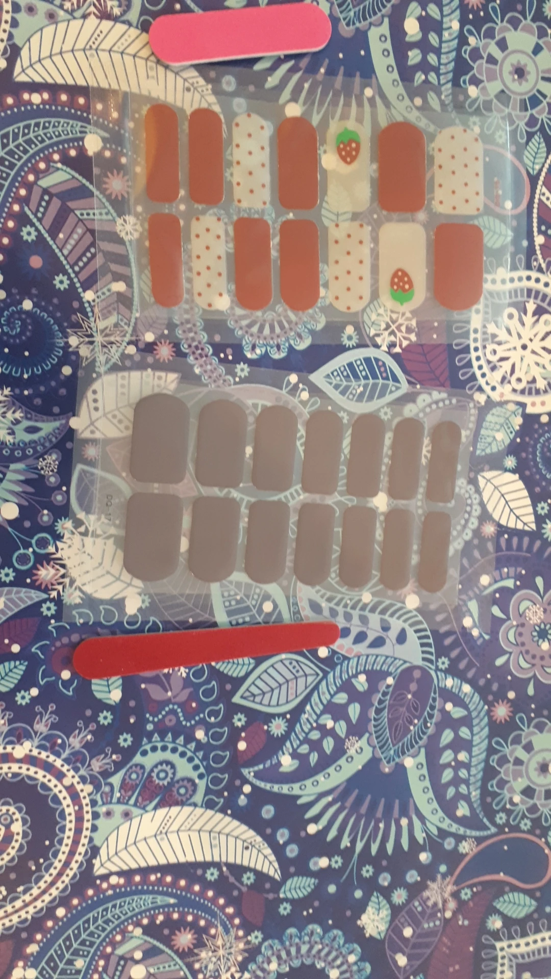Очень доволен клеем, они являются третьей стороной, которую я получаю, они легко наносятся, размеры подходят для моих ногтей и легко обрезаются извести. Это быстрый способ иметь красивые ногти. Мои ногти Короткие, и почти половина дизайна теряется. Иногда даже детали слишком высокие, и, когда режу излишки, я поставляю дизайн. Они хорошо прилипают к плоским s-nails, но мой индекс ногтей довольно изогнутый и сморщенный. Они работают хорошо около 3-5 дней, зависит от ногтя, если мы наносим краски для ногтей и если руки используются много. Они прибыли в течение 3 недель на Балеарские острова, следуя за ними и доставляя домой.