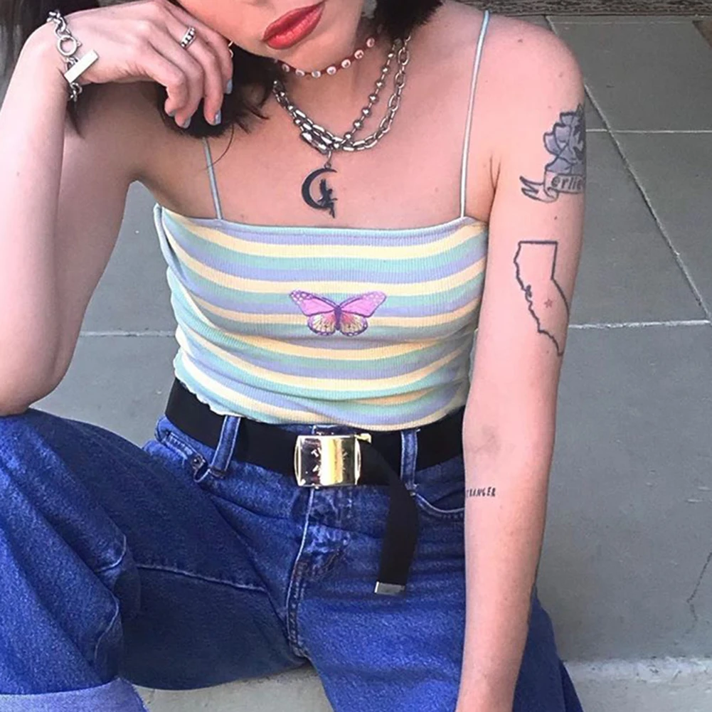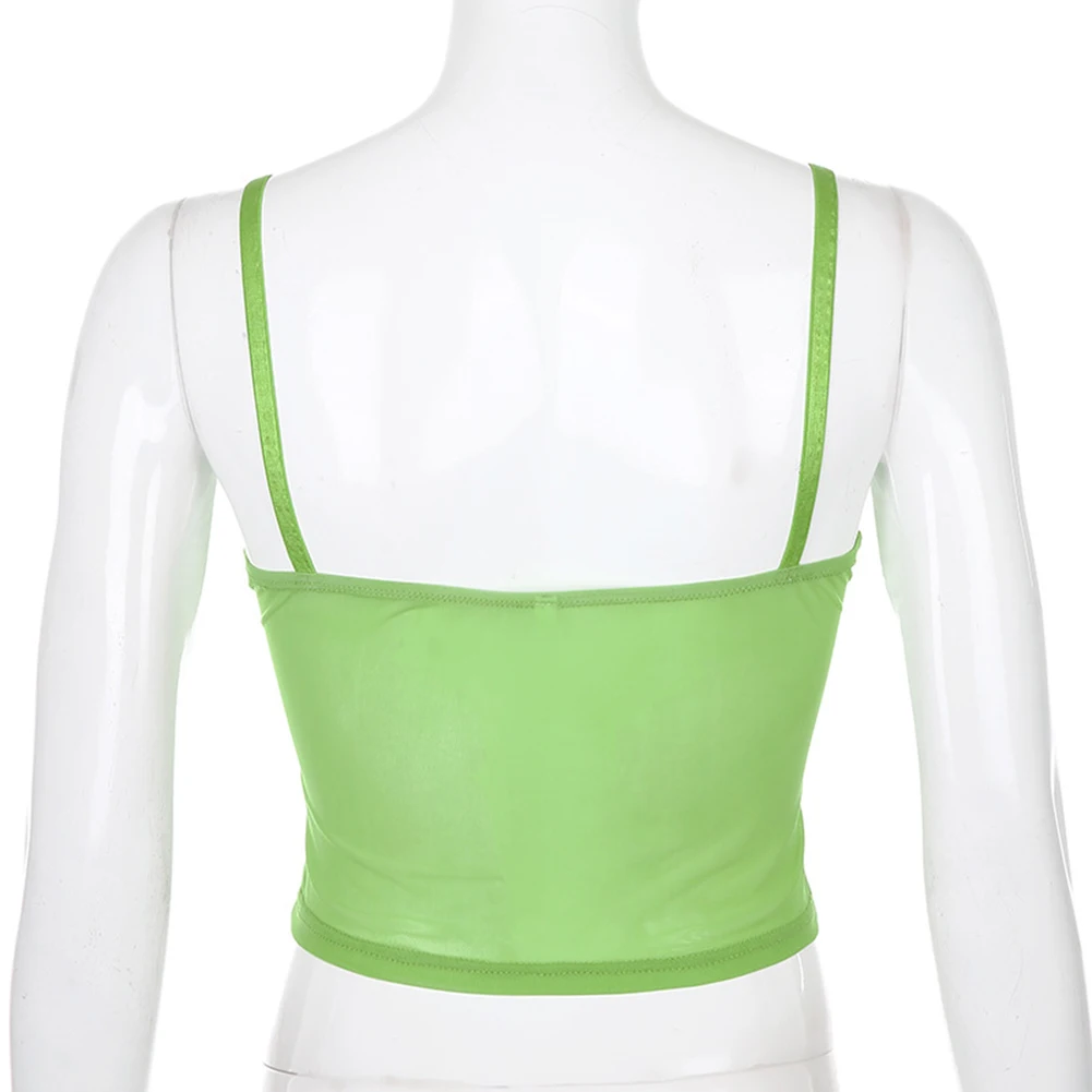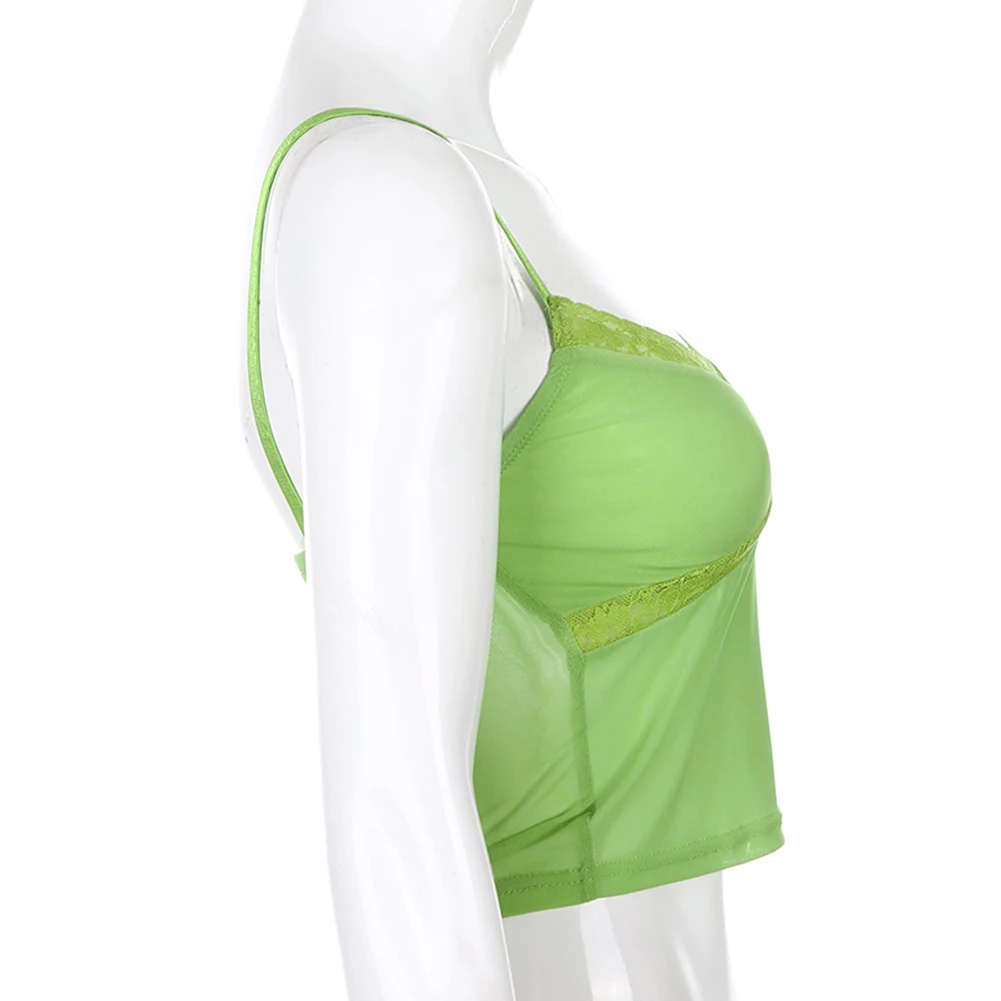 Летнее платье с сеткой в стиле пэтчворк сексуальные Обрезной Топ, молочница женская обувь с низким вырезом на спине, топ на бретелях с оборками, в стиле V образным вырезом Вечерние футболка Спагетти ремень Y2K