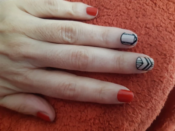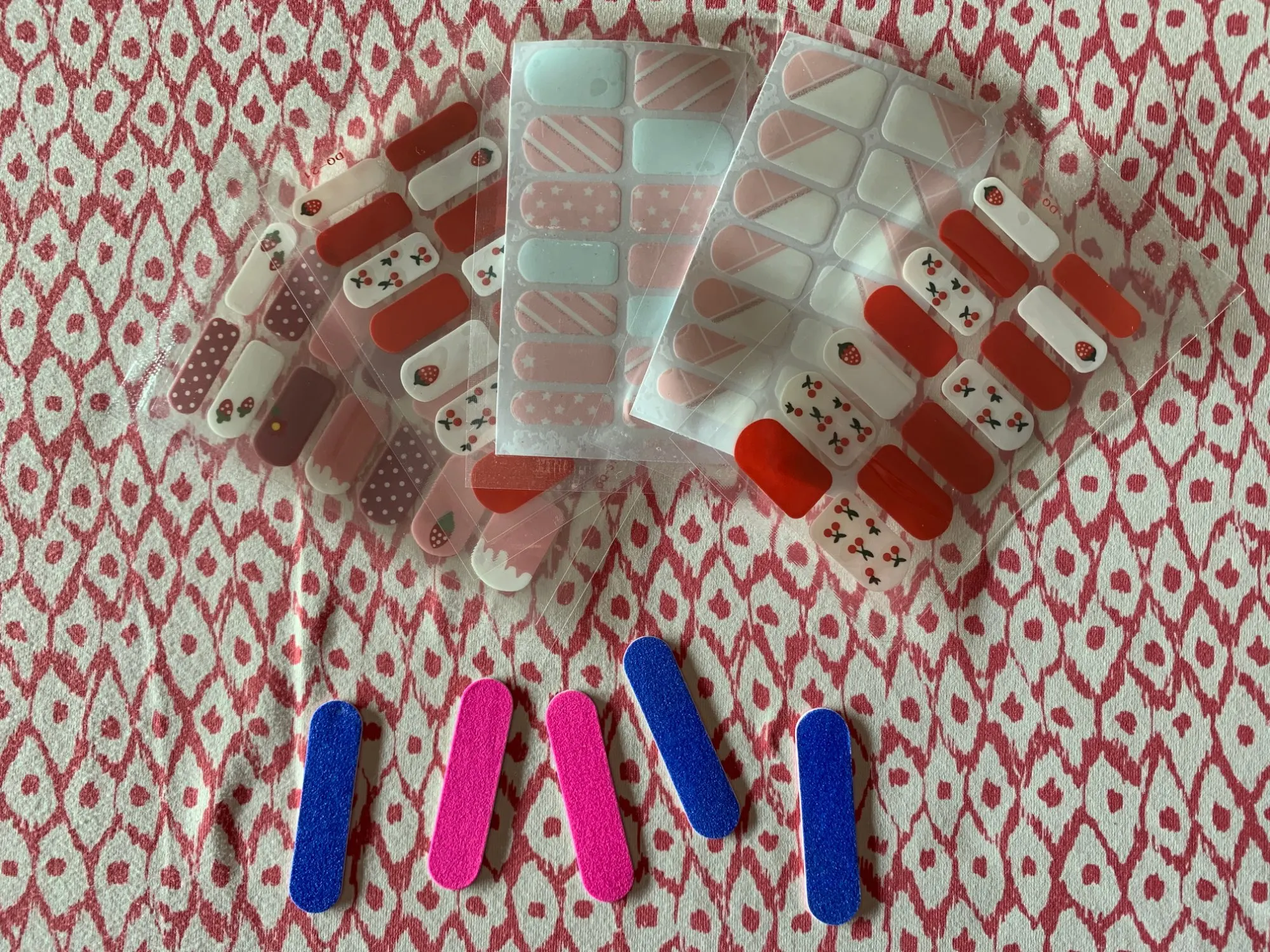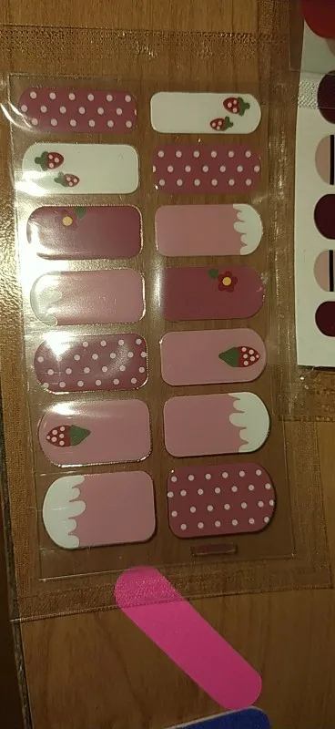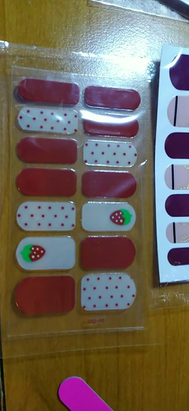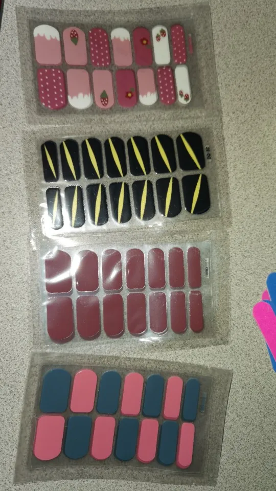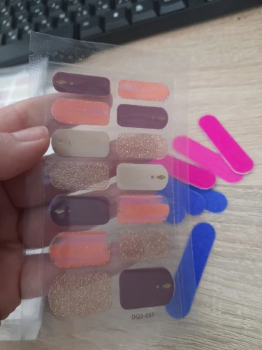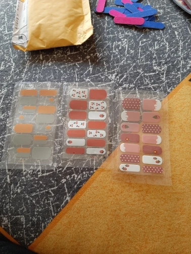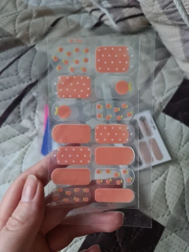 классные наклейки. уже носила такие. отлично держаться 4-5 дней точно. рекомендую! плюс в этом магазине отличный выбор. к заказу продавець положил много одноразовых пилочек для ногтей. с их помощью удобно обрабатывать край наклейки. я довольна покупкой.