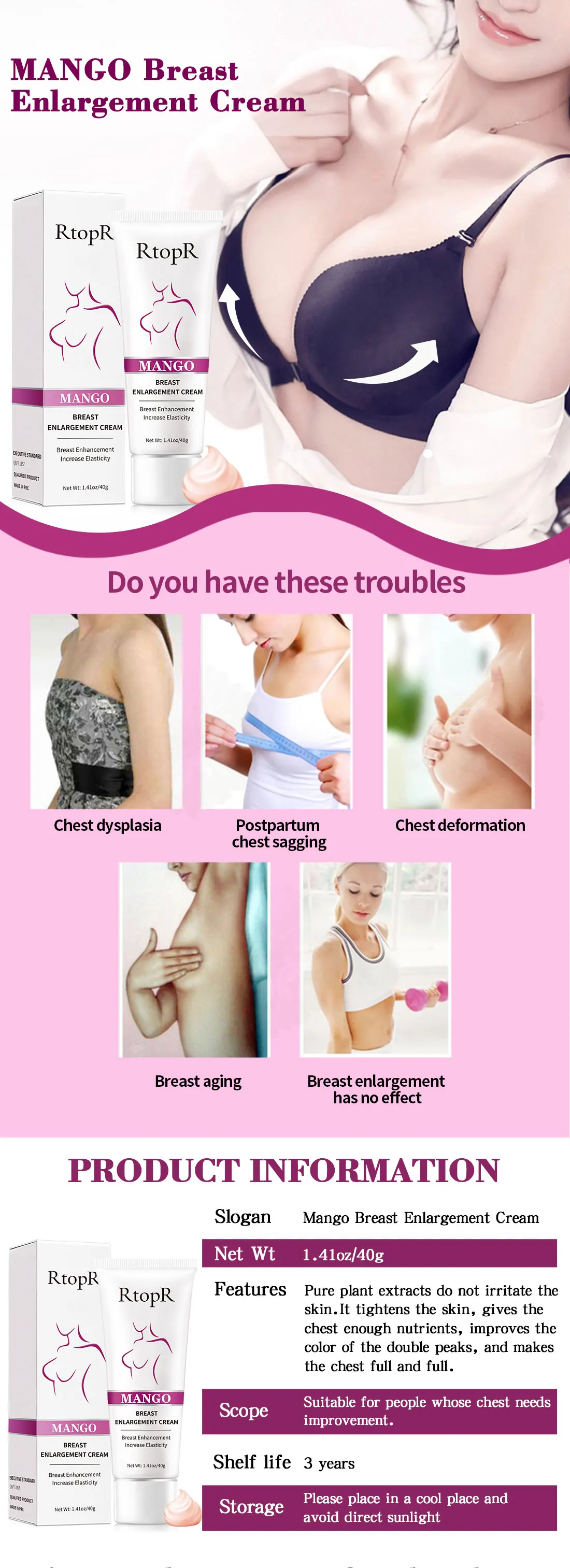 Крем для увеличения груди RtopR манго для женщин, полная эластичность, уход за грудью, укрепляющая подтяжка для быстрого роста груди, крем для большого бюста 40 г