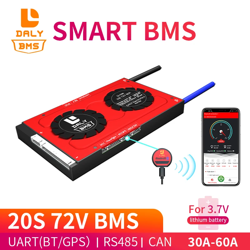 Daly 18650 smart BMS 20S 72V 30A 40A 60A Bluetooth 485 к USB устройству NTC UART программное обеспечение togther Lion LiFepo4 батарея BMS◆ В настоящее время все умные BMS без водонепроницаемой функции.◆ Эта ссылка предназначена для литий-ионного аккумулятора 20S 72V. Пожалуйста, заполните параметр после размещения заказа, чтобы обеспечить SOC правильной информацией.По крайней мере, ответ должен быть отправлен нам Aliexpress центром сообщений. Спасибо.Особенности◆ UART: это обычный продукт Daly. UART является универсальным асинхронным приемником/передатчиком, он трансформирует данные для передачи между последовательной связью и параллельной связью. Как чип для преобразования параллельных входных сигналов в серийные Выходные сигналы, UART обычно интегрируется в другие коммуникационные интерфейсы.◆ RS485: Пожалуйста, выберите модель RS485 Daly. RS-485 принимает сбалансированную передачу и дифференциальный прием, поэтому он имеет способность подавлять помехи в обычном режиме.◆ Модуль Bluetooth: если вам нужна эта функция, пожалуйста, выберите модуль bluetooth, если вы не покупаете его, мы не отправим его вам.◆ Ниже аксессуары нужно купить отдельно.1.USB к UART кабель 2.USB к RS485 кабель 3. Модуль Bluetooth 4. Панель дисплея питания (активация ключа) 5.BMS сенсорный экран управления1. DL20S 72V Smart BMS 30A 40A 60A bms можно использовать для 20S Li ion или LiFePO4 или аккумулятор лто. Клиент может отрегулировать paramter перезарядки или переразряда параметр сидя и другие параметры, если клиенту нужно использовать какой тип батареи для той же серии батареи.Внимание:Клиент должен определить серии батарей, затем выбрать ту же серию BMS. Например, ваш аккумулятор 24S, вы должны выбрать 24S BMS, не можете выбрать 20 или другой. Номер серии BMS фиксирован, не регулируется после отправки BMS.◆ Инструкции по управлению: контроль устройства дистанционного управления.◆Значок транспортного средства: передача данных отправка команды◆Статистический отчет: собирайте информацию о данных, клиент может контролировать емкость аккумулятора и другую информацию о тревоге.◆Электронный забор: Предельный Диапазон забор.◆Информация об устройстве: информация о параметрах устройства и т. д.Информацию о вашем аккумуляторе можно проверить на вашем хост-компьютере, затем вы можете контролировать состояние батареи в любое время. Который легко контролирует ваше устройство. Умные BMS делают нашу жизнь легкой.