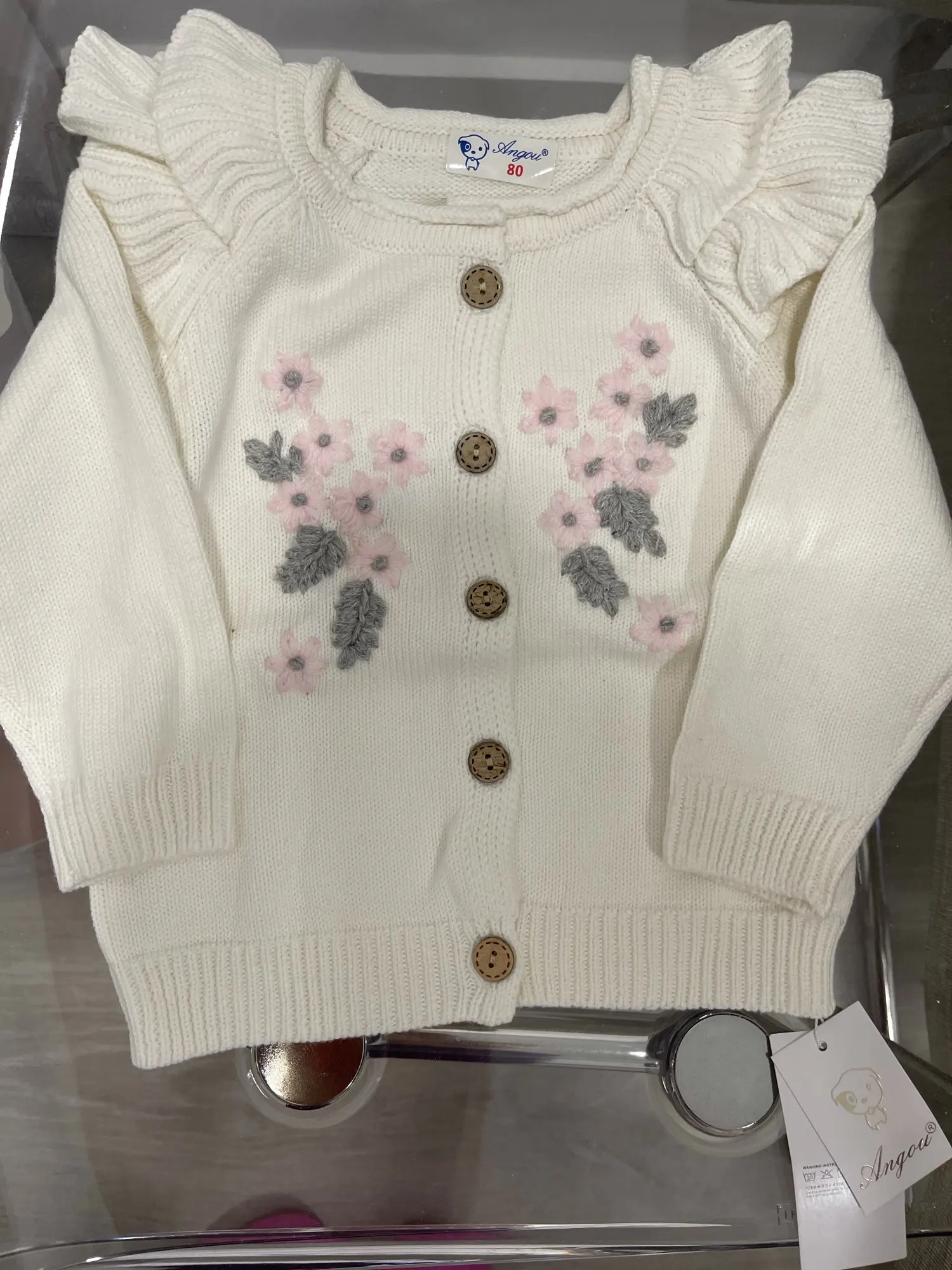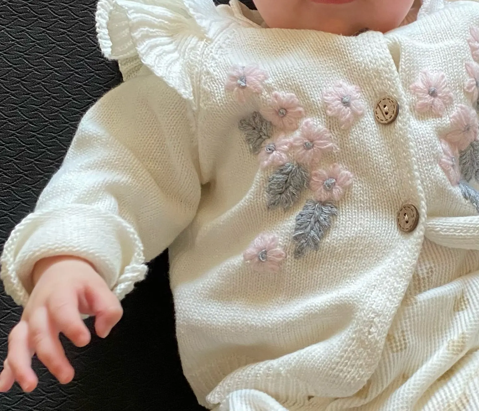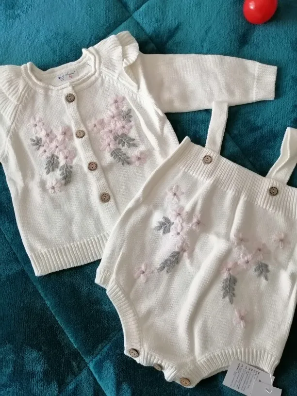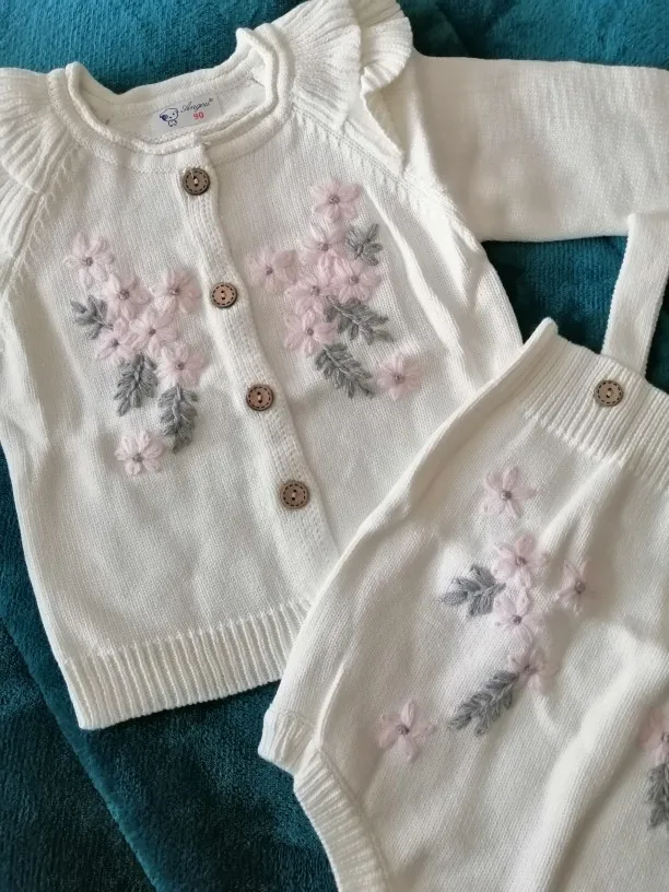 Комплект вязаный для девочек, с цветочной вышивкой и длинным рукавом