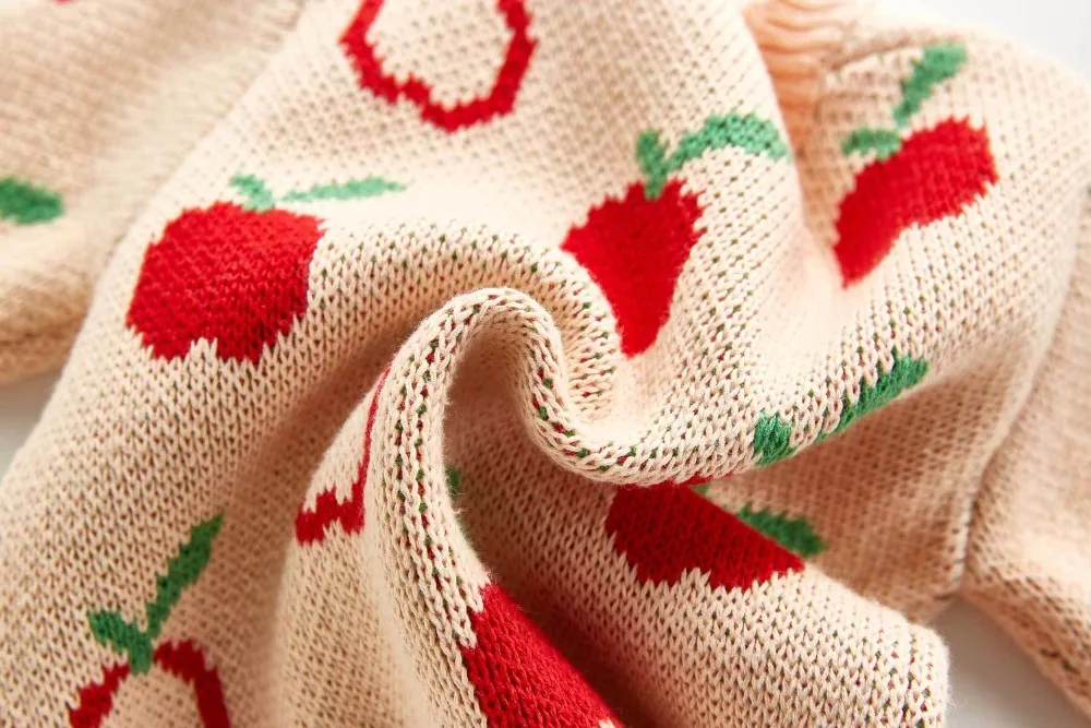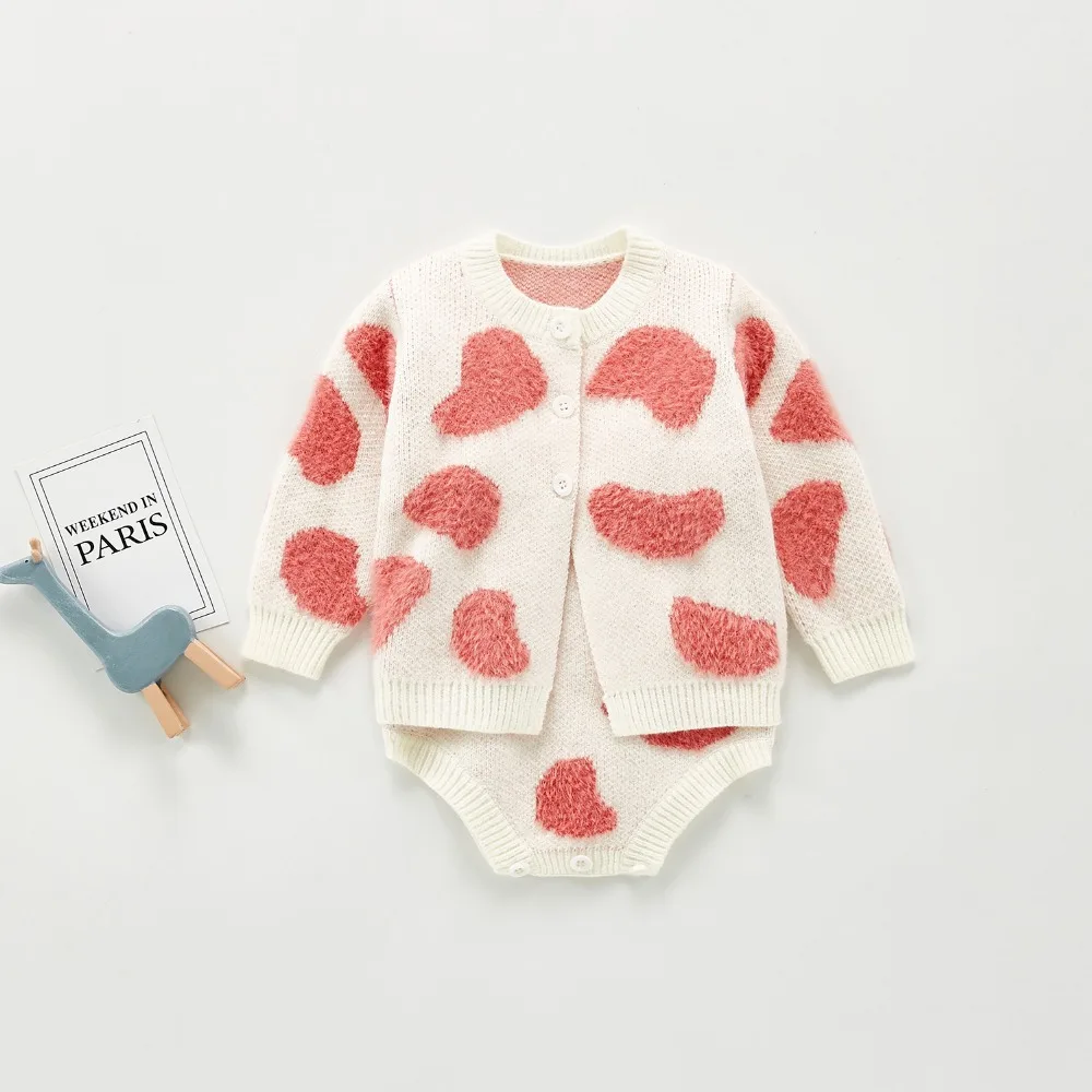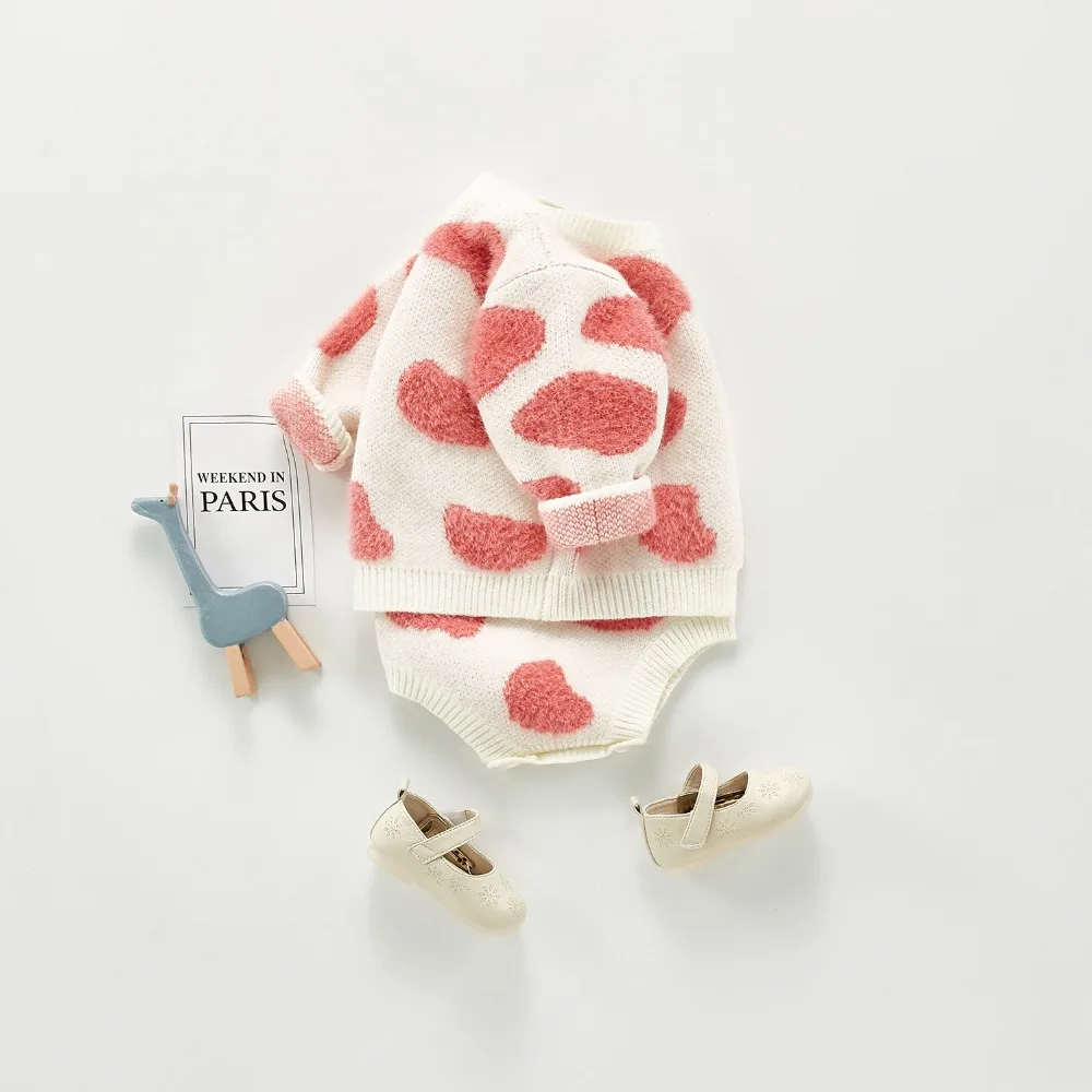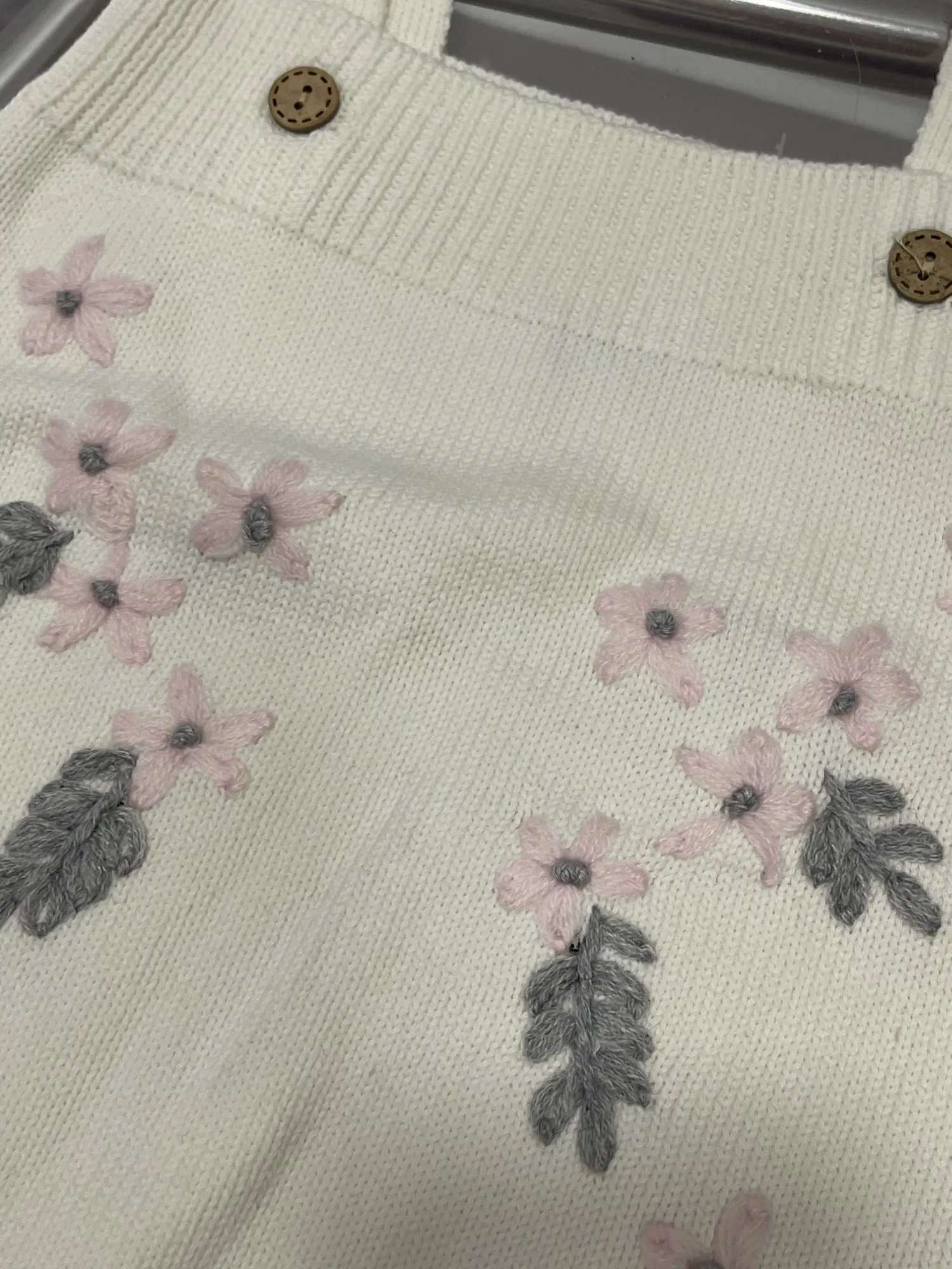 Комплект вязаный для девочек, с цветочной вышивкой и длинным рукавом