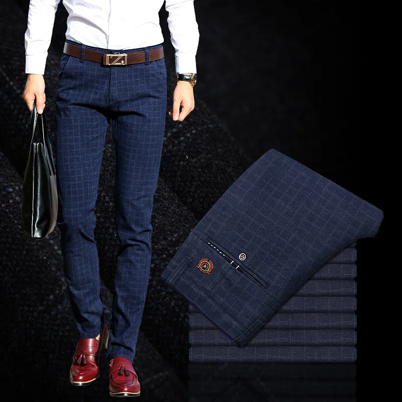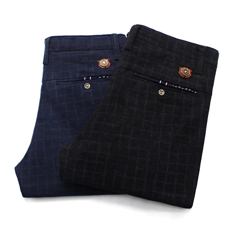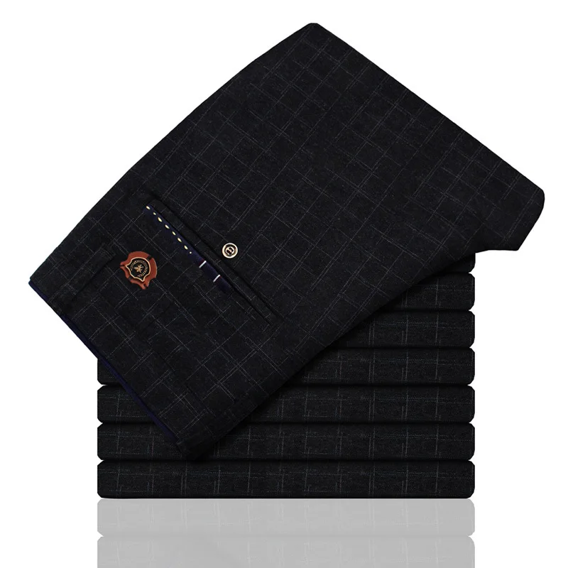 Мужские хлопковые эластичные повседневные брюки, однотонные деловые брюки на все сезоны, 2020