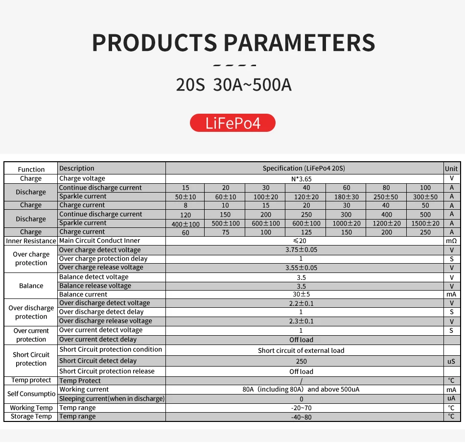 BMS 24S Daly LiFePO4 72v 30A 80A 100A 120A 150A 200A 250A 300A 400A...