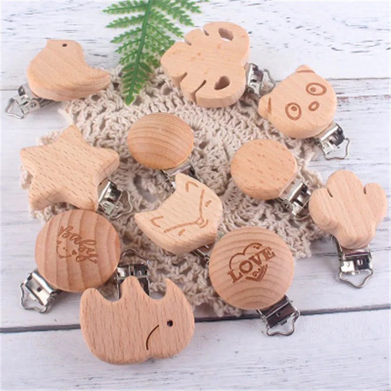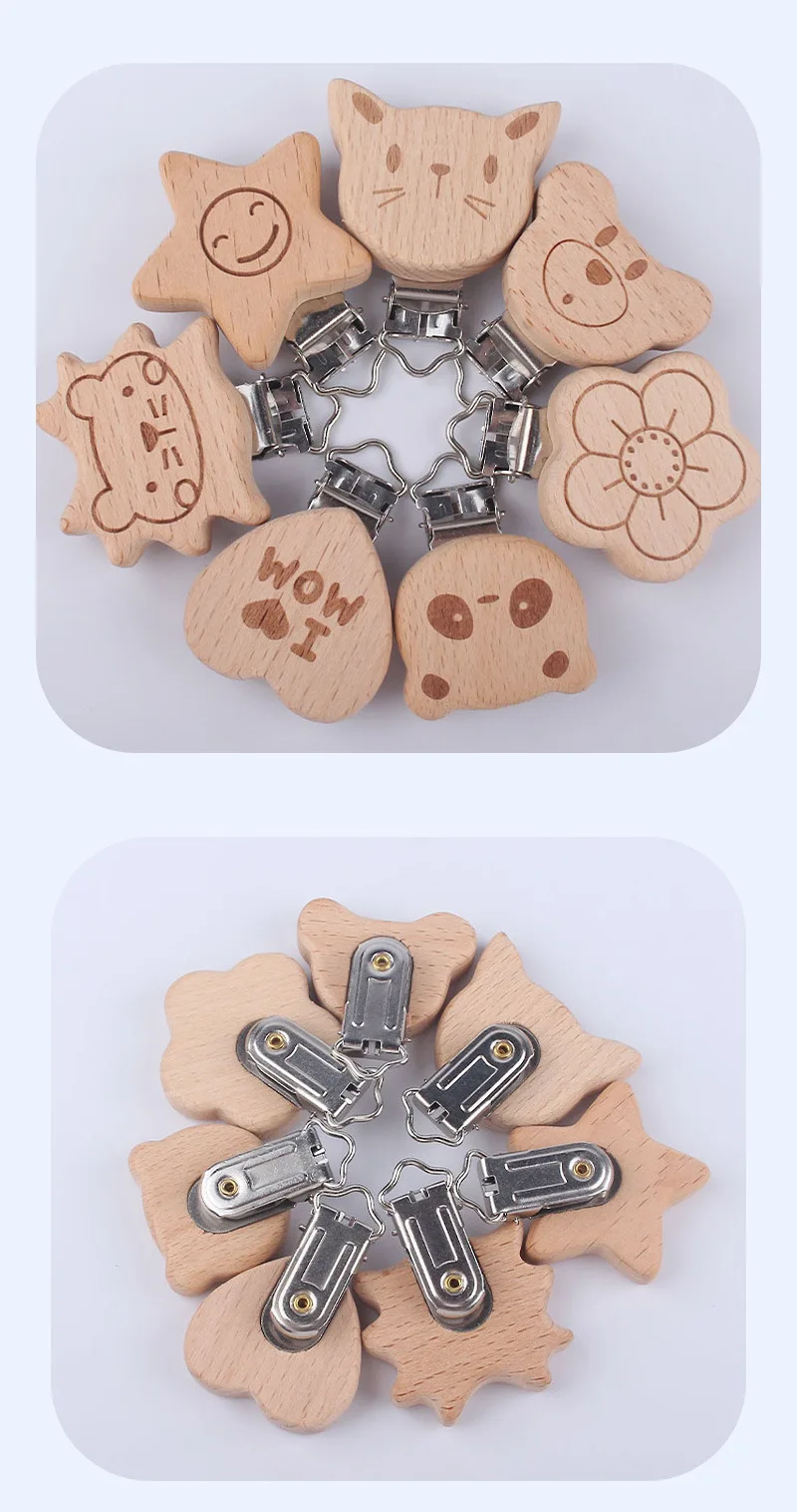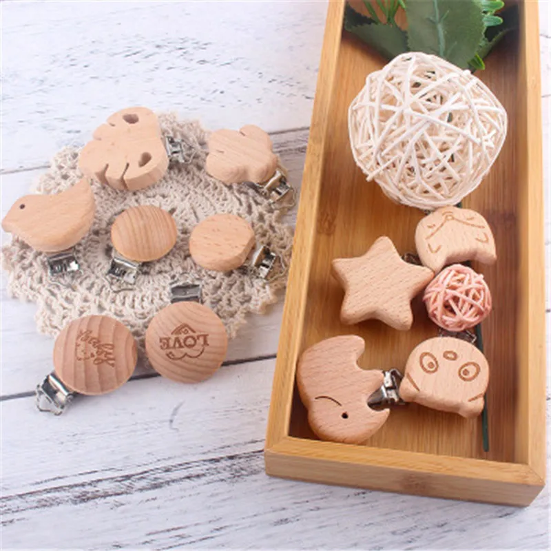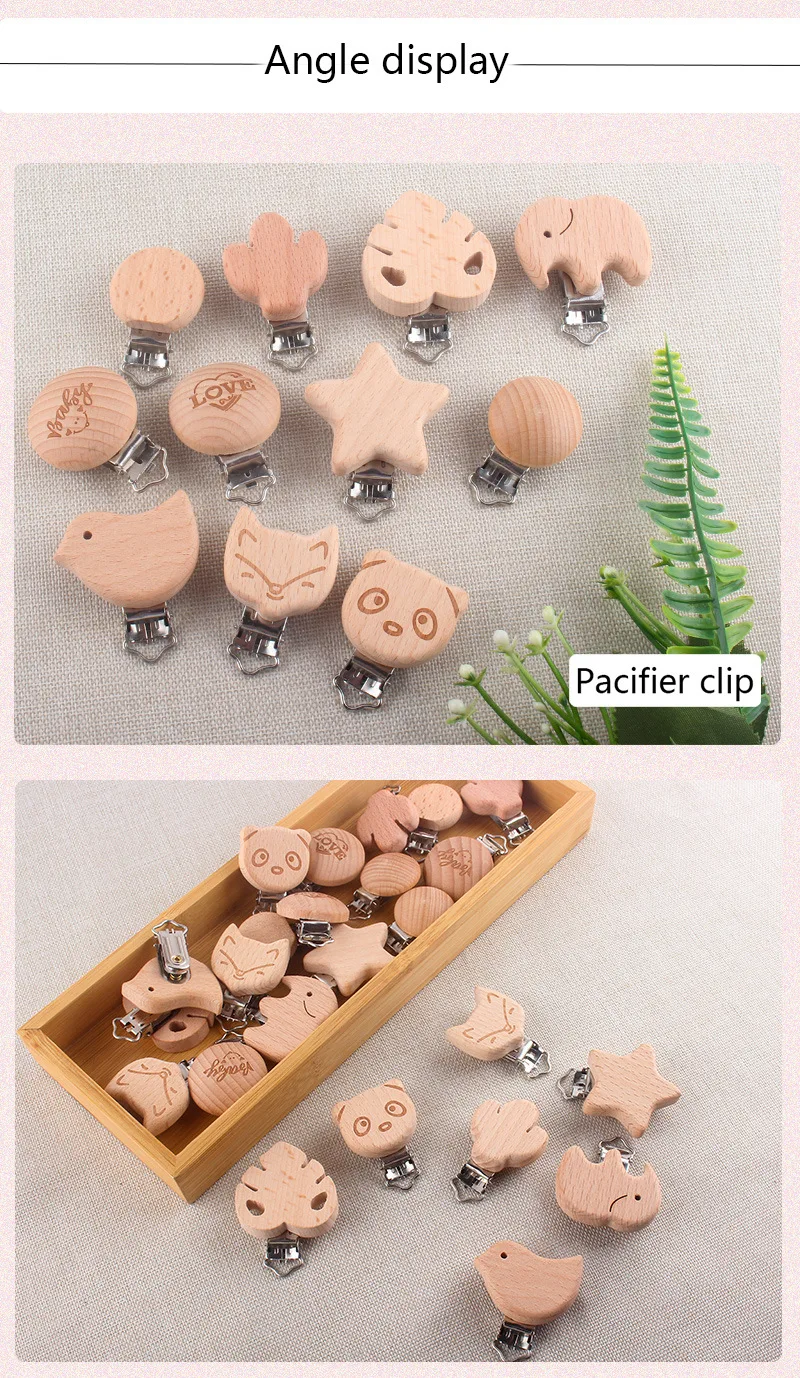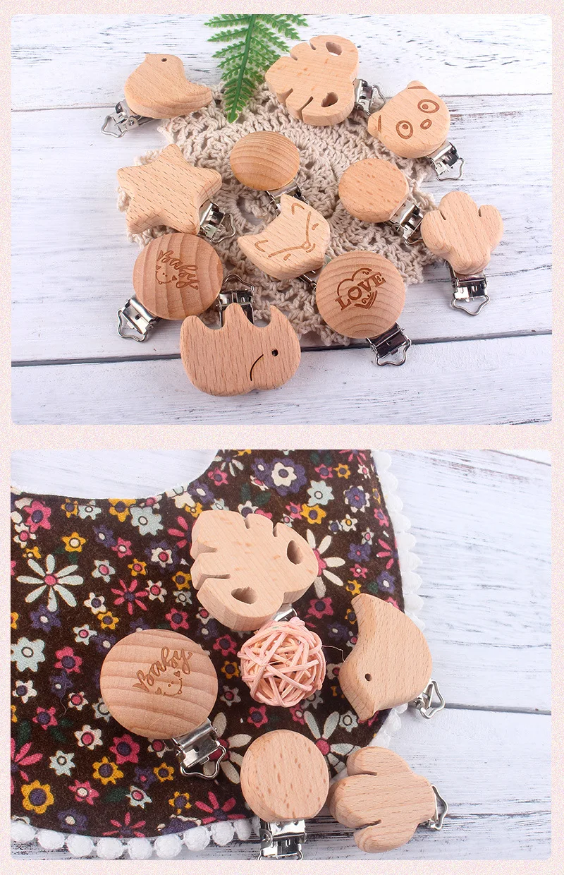 5 шт.компл. Детские зажимы для соски, без БФА, милая модель, Буковый зажим для соски, Детские DIY Мультяшные животные, деревянный держатель для соски на цепочке