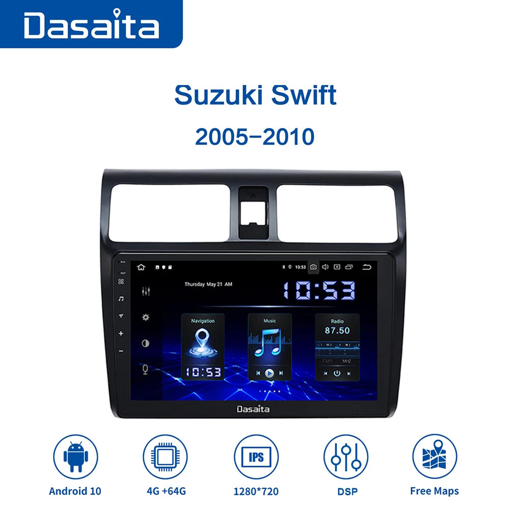 Автомобильный радиоприемник Dasaita, 10,2 дюйма, IPS, Android 10,0, DSP, для Suzuki Swift 2005, 2006, 2007, 2008, 2009, 2010, GPS, MP3, 4 Гб ОЗУ, навигация Carplay